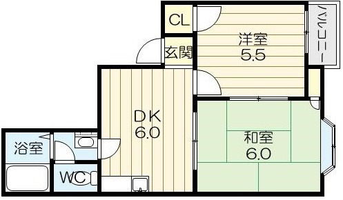 총 야칭 [관리비,수도세포함] 72,000엔에 2DK의 총 17.5조 (DK 6조 / 와시츠 다다미방 6조 / 방 5.5조)와 로프트 약 7조 넓이로