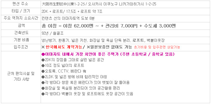 이상으로 오너즈 부동산에서 추천하는 이마자토역 주변에서 오사카 집구하기 편!