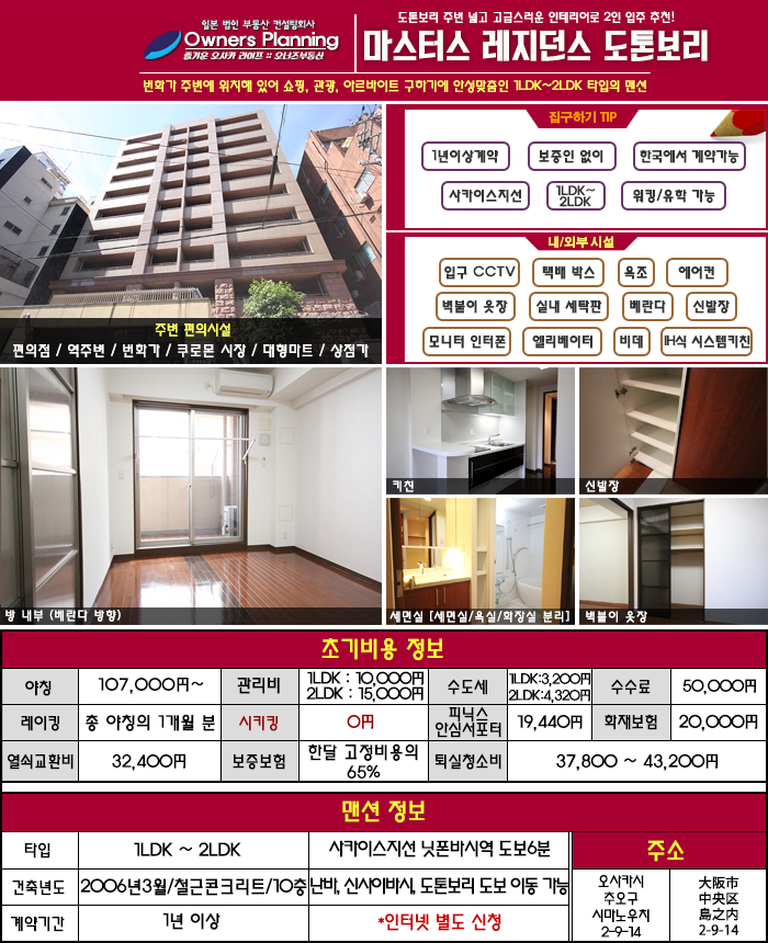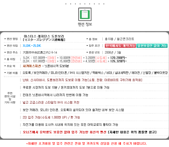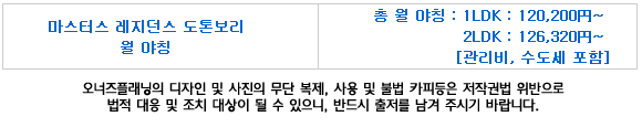 마스터스 레지던스 도톤보리 관련 포스팅이었습니다.