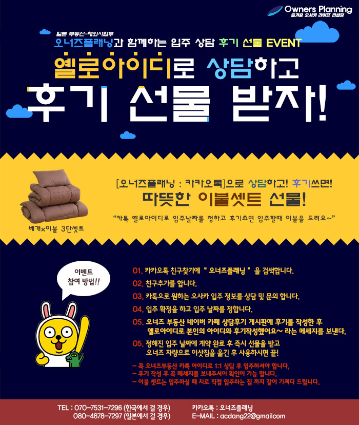 아래의 [방 문의하기] / 카카오톡 : 오너즈플래닝으로 문의주시면 전문 담당자가 자세하고 친절한 안내 도와드리겠습니다.