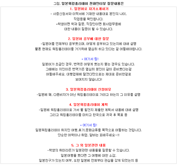 ● 일본워킹홀리데이 전화인터뷰 후기 및 질문내용(바로가기) :