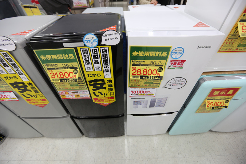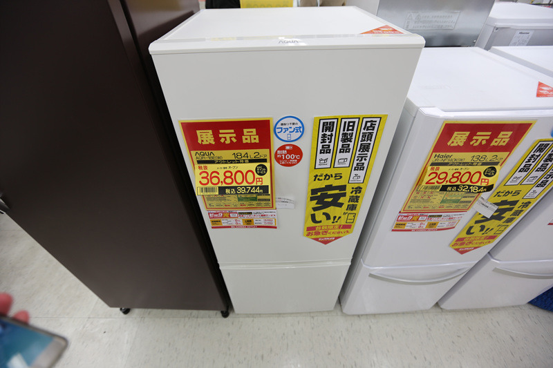 하지만 대부분 아울렛 등에서 판매하는 상품은 1% 정도의 낮은 포인트로 신품에 비해 10% 이상 저렴한 경우와 그렇지 않은 경우도 있으니 구입 가격에 주의하는게 좋습니다. 184리터 아쿠아 냉장고가 불과 36,800엔.. (신품은 5만엔이 넘는 가격이니 10%를 제외해매우 저렴합니다.)