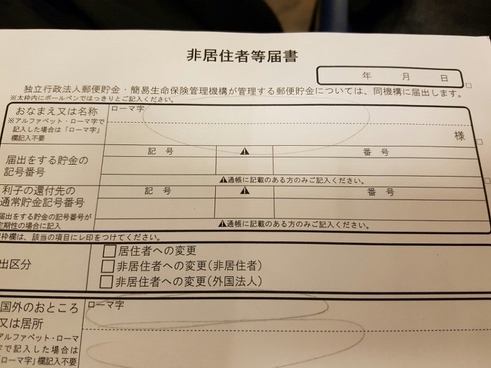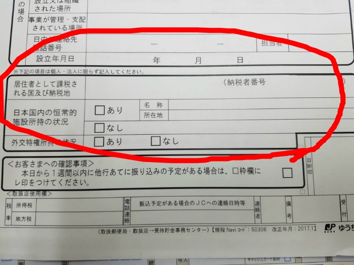 문제는 바로 이부분 非居住者等届書 에 나와있는 납세자번호 기입란인데 결국 우체국 담당자에게 정확한 답변을 얻지 못하고 돌아왔네요.