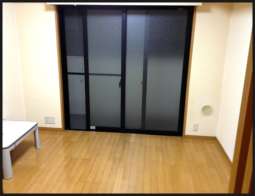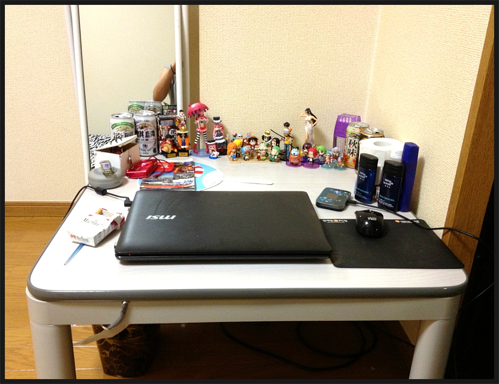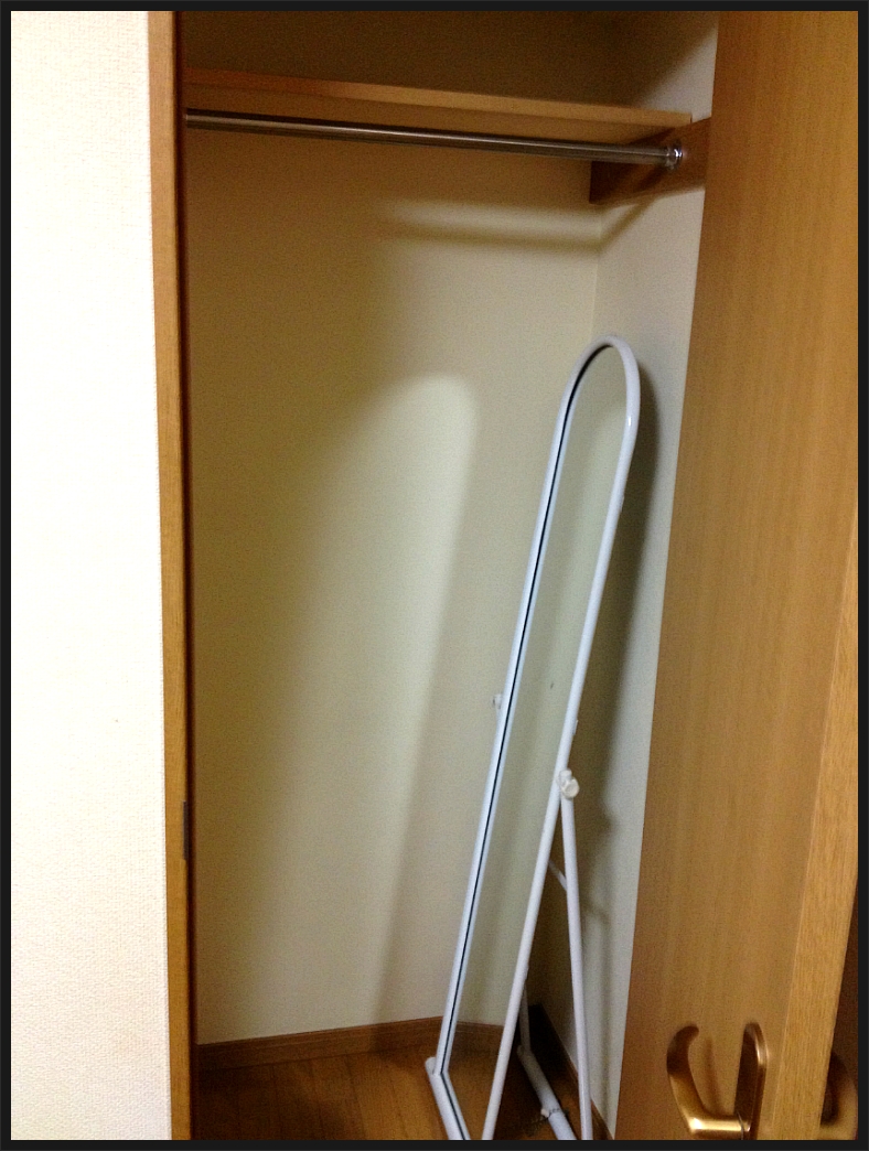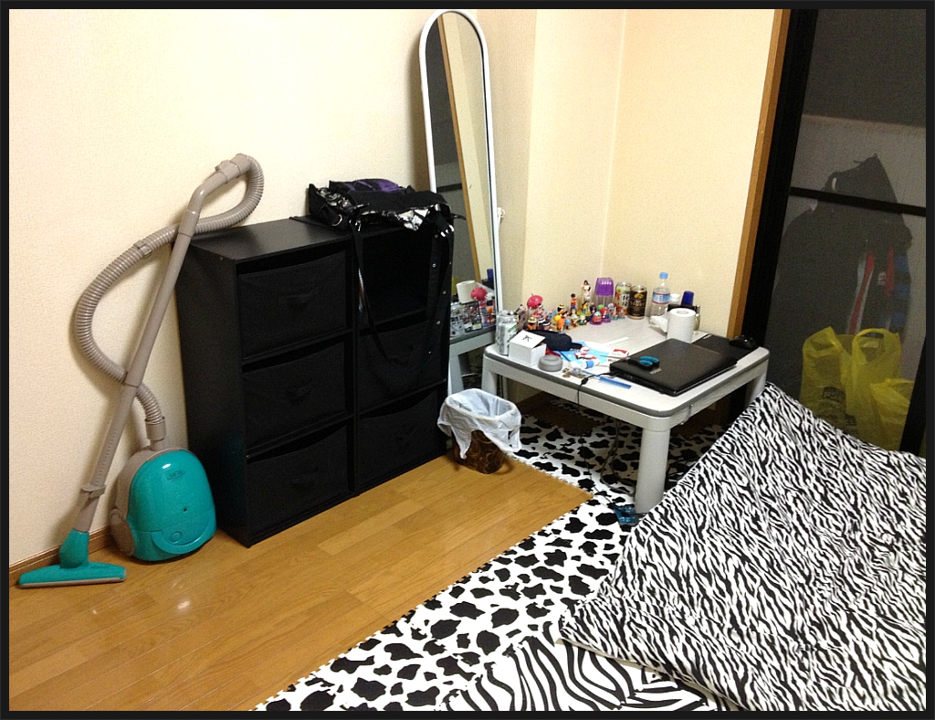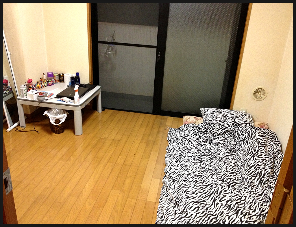 코타츠와 전신거울이 방안에 유일한 가구 ㅋㅋ 저것들도 전에 여기 살던 누님의 자비로 얻게 된!