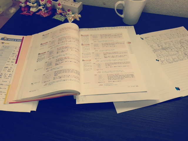 한자 외우고 있습니다 커피마시면서