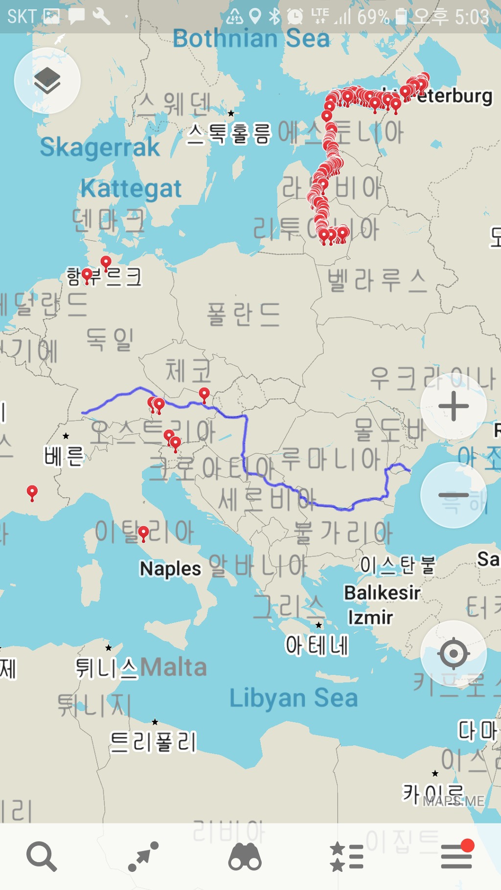 위에 파란선 유로벨로 6번길입니다 위에 빨간 루트는 동유럽 자전거 코스입니다