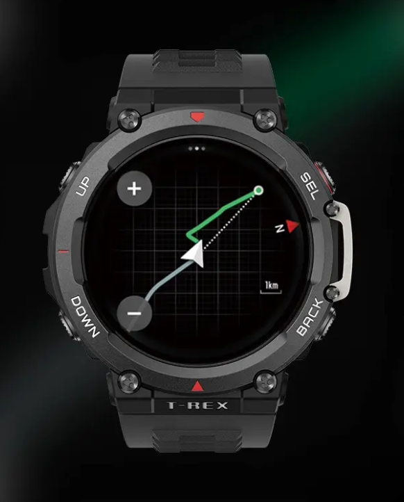 위 사진의 T-Rex 2는 밀리터리 스펙(MIL-STD-810)을 가지며 2주파 GNSS 수신기를 탑재하고 있습니다. GPS, 글로나스(GLONASS), 갈릴레오(Galileo), 베이더우(BeiDou), QZSS로부터 2주파를 수신하여 26시간 동안 트랙을 기록할 수 있을 정도로 배터리 사용시간이 깁니다. 이는 애플 워치나 갤럭시 워치와 비교했을 때 상당히 긴 시간입니다.