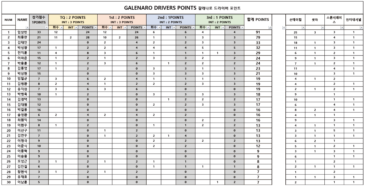2025년 12월 14일 기준 선데이컵 레이스 어워즈와 갈래나로 드라이버 레이스포인트 입니다 작성자김윤탁|작성시간25.12.17|조회수194 목록 댓글 0 글자크기 작게가 글자크기 크게가 다음검색 현재 게시글 추가 기능 열기 북마크 공유하기 신고 센터로 신고 댓글 댓글 0 댓글쓰기 답글쓰기 댓글 리스트