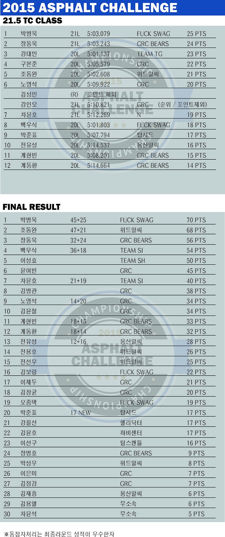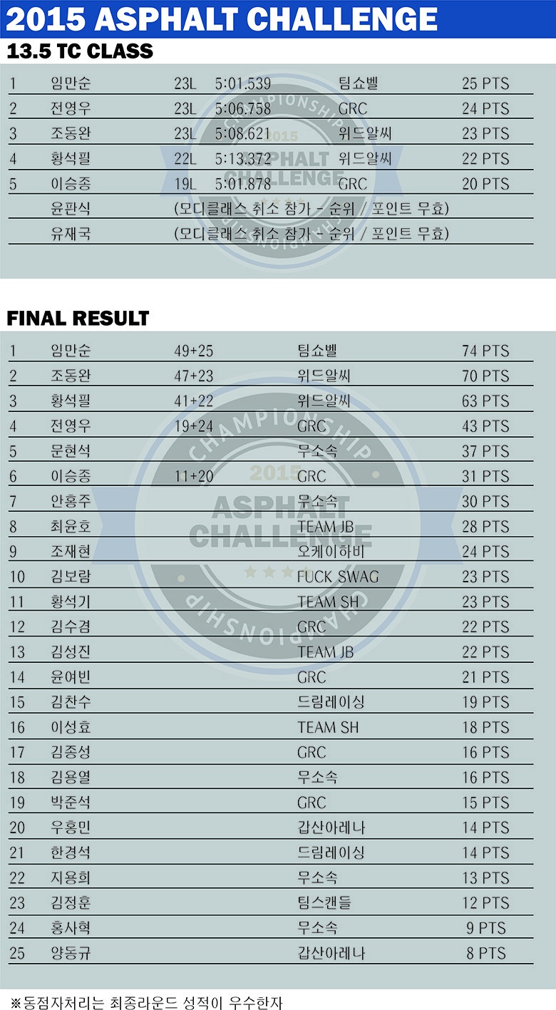 2015 GRC 아스팔트 챌린지 FINAL RD 레이스 결과입니다. 작성자김윤탁|작성시간15.10.22|조회수196 목록 댓글 0 글자크기 작게가 글자크기 크게가 ■ 모디파이 클래스 파이널 라운드는 참가자 미만으로 취소. 다음검색 현재 게시글 추가 기능 열기 북마크 공유하기 신고 센터로 신고 댓글 댓글 0 댓글쓰기 답글쓰기 댓글 리스트