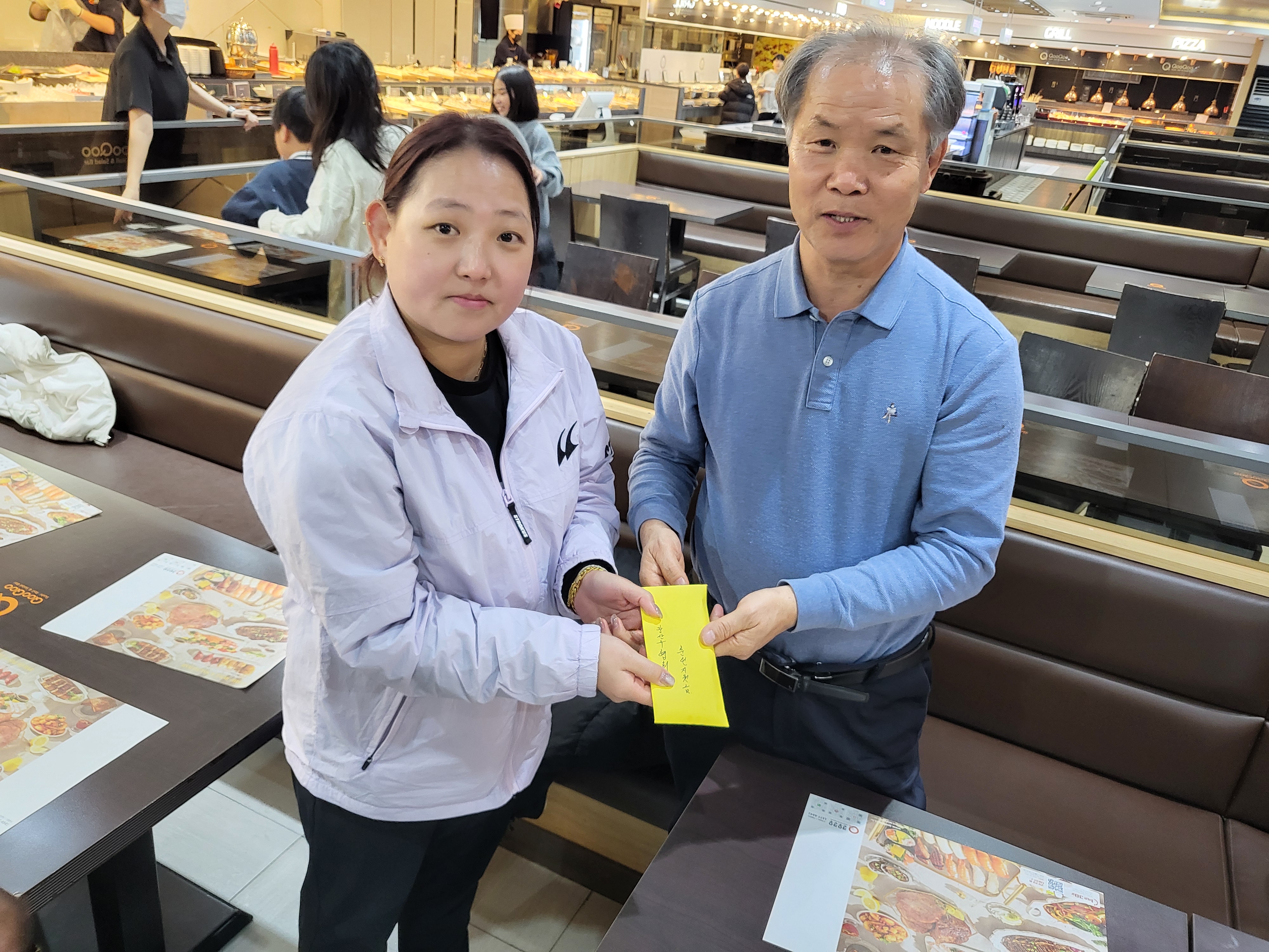 우리 구내 배드민턴 선수 육성학교인 산월초등학교 배드민턴부에 훈련지원금 현금100만원과 셔틀콕 3박스(75타)를 전달하고, 첨단 쿠우쿠우에서 선수들과 저녁식사를 하였습니다.