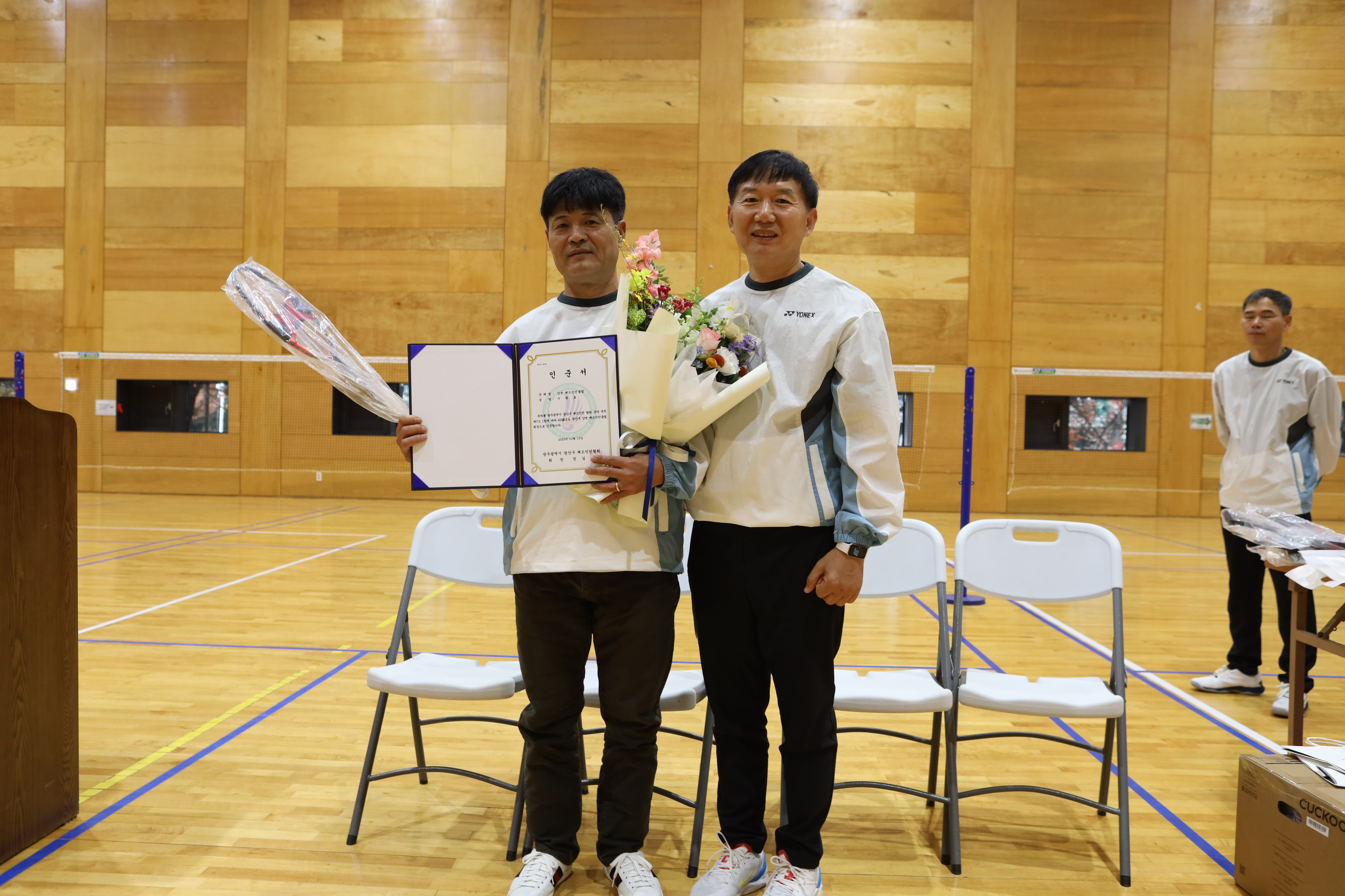 운동장소는 광산구 첨단다목적체육센터에서 운동 하며