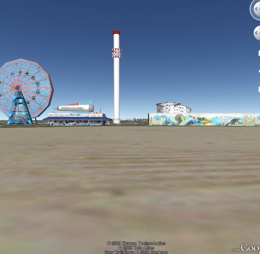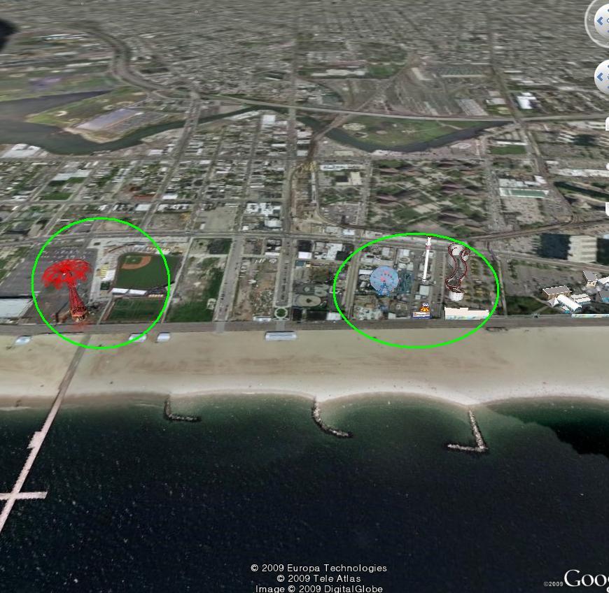 노란색 안쪽은 "리버티 아이" 와 "더 스크리머"가 있는 놀이공원이 있는 곳입니다.