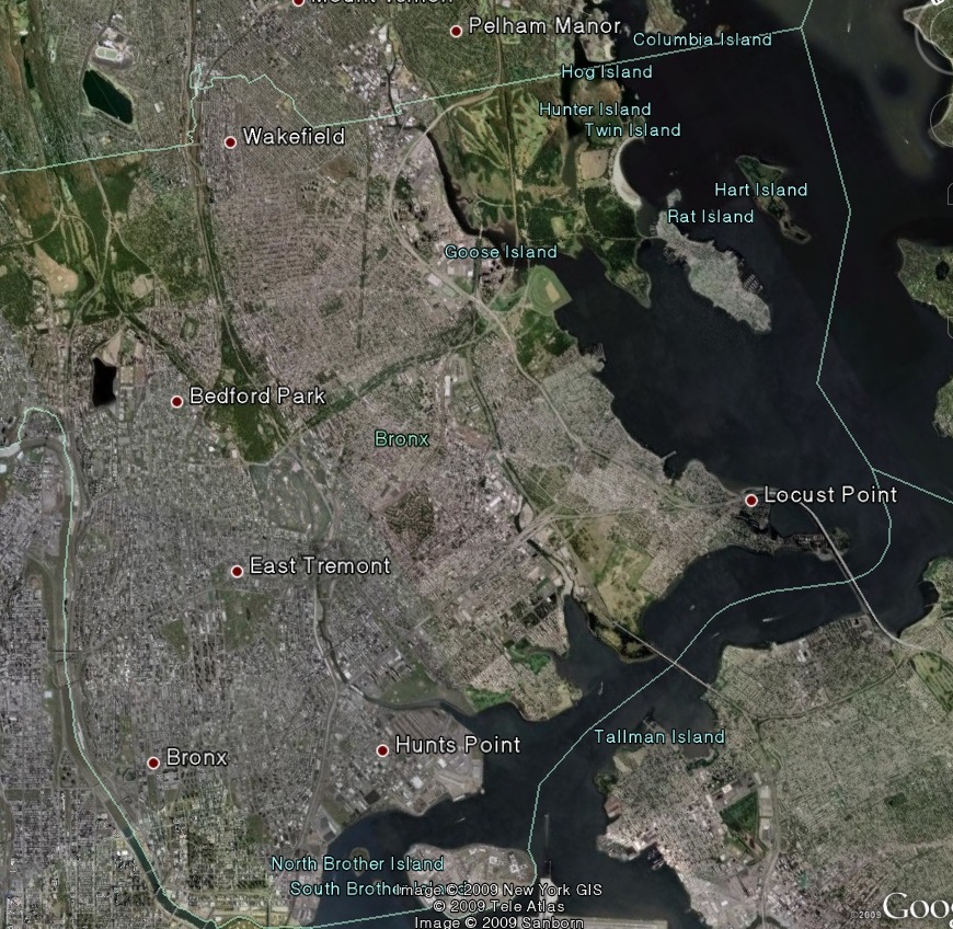 초록색인 곳은 브롱크스 구(보한 구)