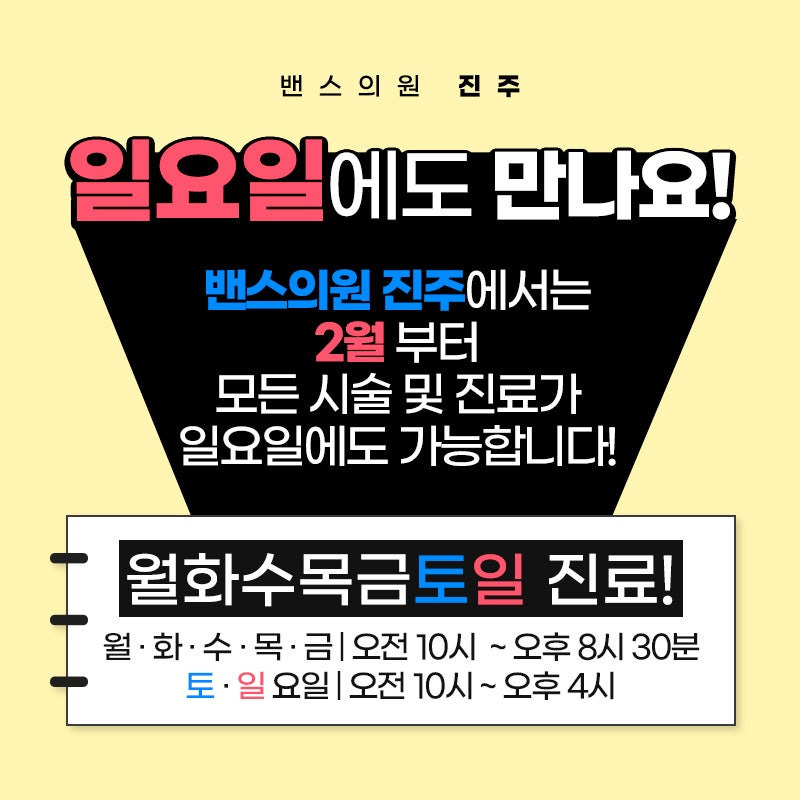 주말에도 저희 병원을 찾아주시는 많은 고객님들을 위해 2월부터 일요일 진료를 시작합니다!