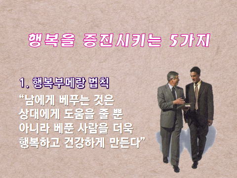 행복하세요? 세상에서 그대가 참 행복의 주인공이 되기를 바래요. 행복을 멀리서 찾지 마세요. 그대 가까이에 있습니다. 밖에서 찾지 마세요. 그대 안에 있습니다. 클릭해 보세요. 정말이예요.