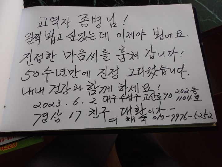 편하게 서로 왕래하고 가정간에도 만나자고 약속하고 방명록에 덕담까지 휘호를 적었다.