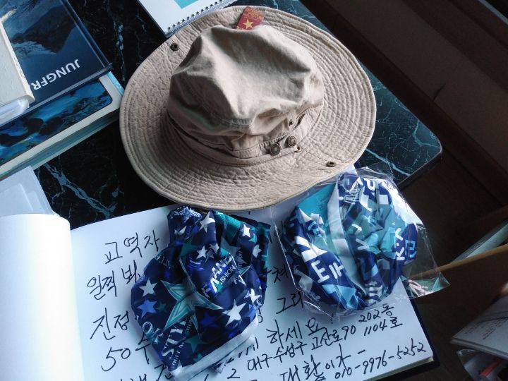 빈 손으로 찾아와도 감격인데 세세하게 정성과 사랑으로 창 긴 모자로 밭일 할 때 쓰고 하라고 모자와 목 보호 스카프를 선물까지 주심에
