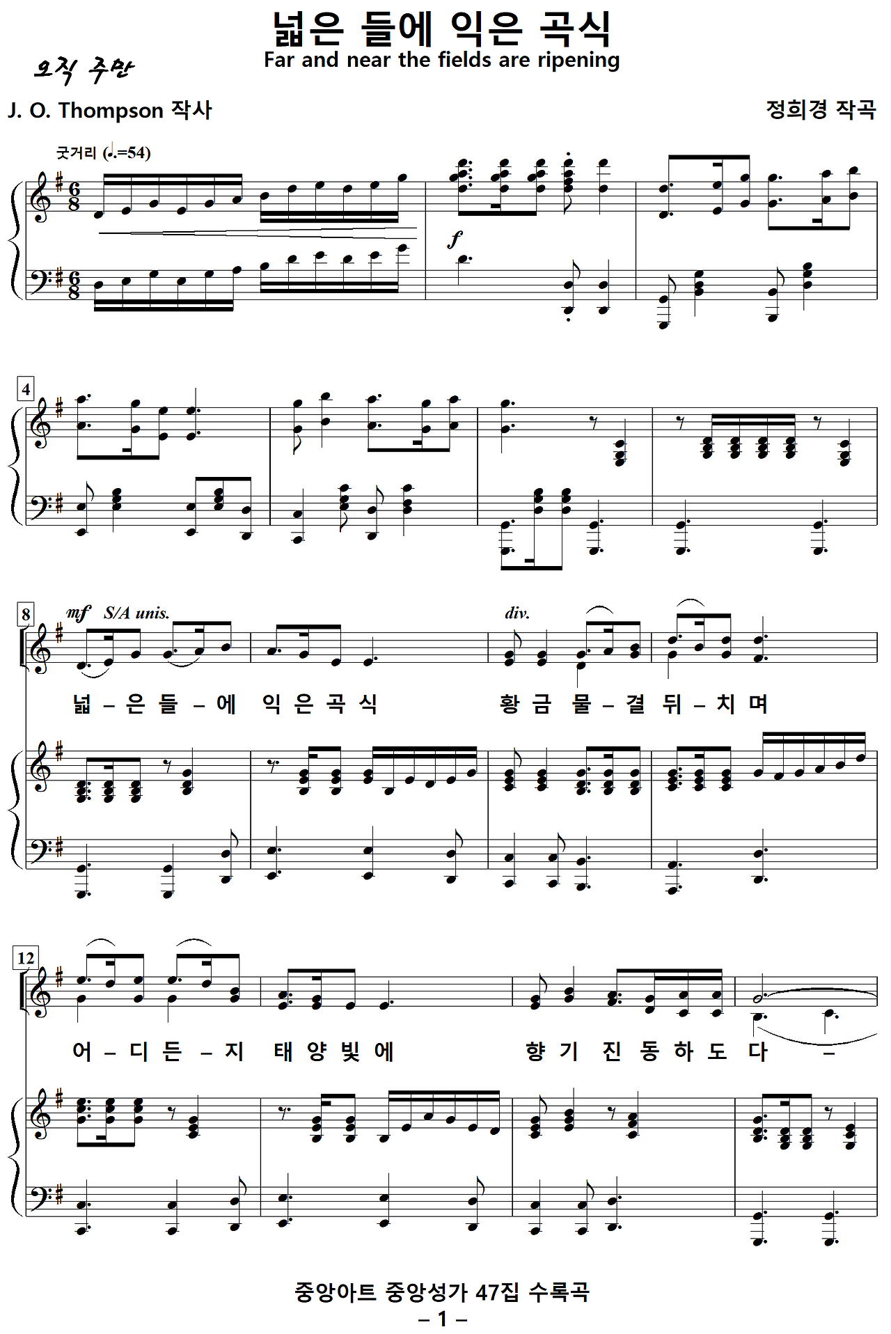 [찬양가사] 넓은들에익은곡식 [J. O. Thompson 작사, 정희경 작곡]
