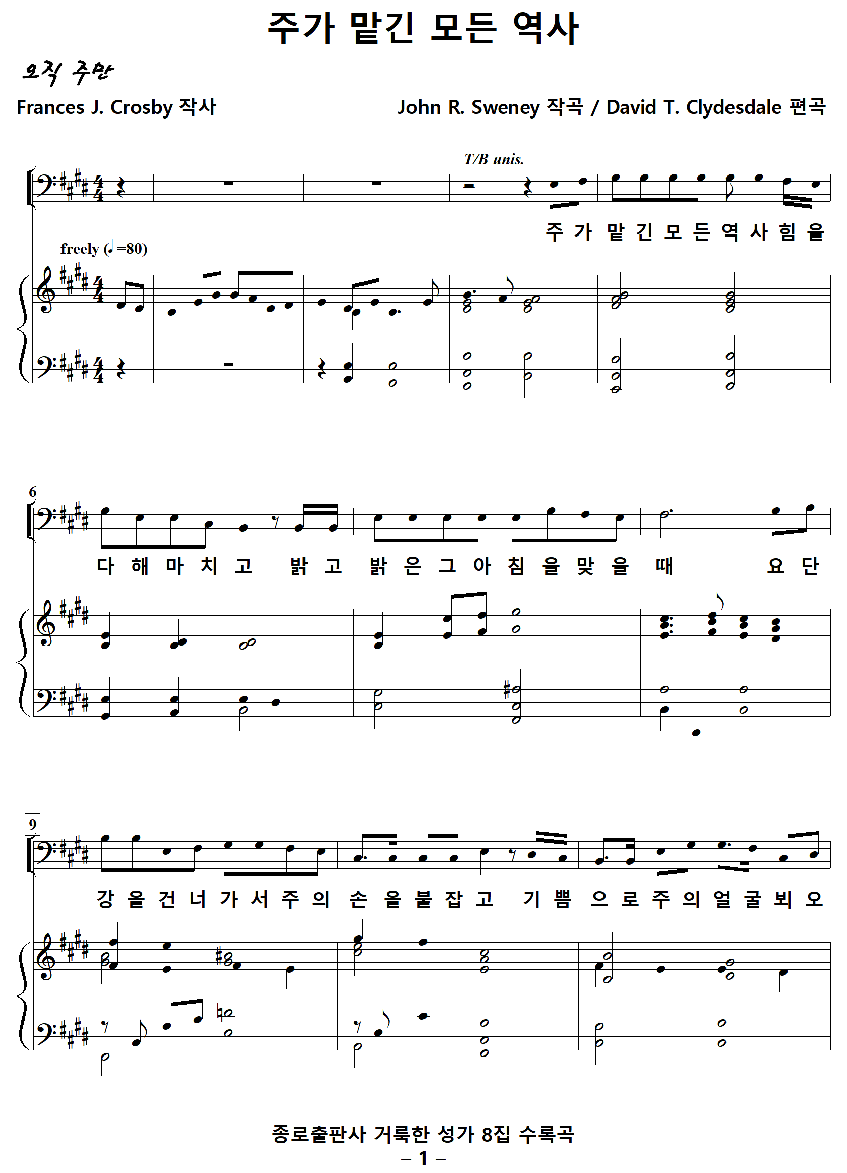 [찬양가사] 주가맡긴모든역사 [Frances J. Crosby 작사, John R. Sweney 작곡, David T. Clydesdale 편곡]
