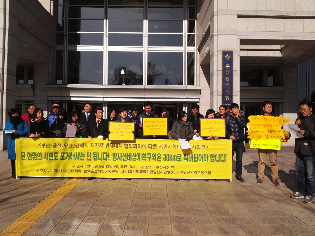 방사선비상계획구역 30km 설정 촉구 기자회견(2/13 부산시청 앞) 작성자양산 허문화|작성시간15.02.15|조회수30 목록 댓글 1 글자크기 작게가 글자크기 크게가 다음검색 현재 게시글 추가 기능 열기 북마크 신고 센터로 신고 댓글 댓글 1 댓글쓰기 댓글 리스트 작성자달빛 한 줌 | 작성시간 15.02.23 26일 월성 1호기 재가동을 밀실에서 가결하려고 한답니다. 댓글 전체보기