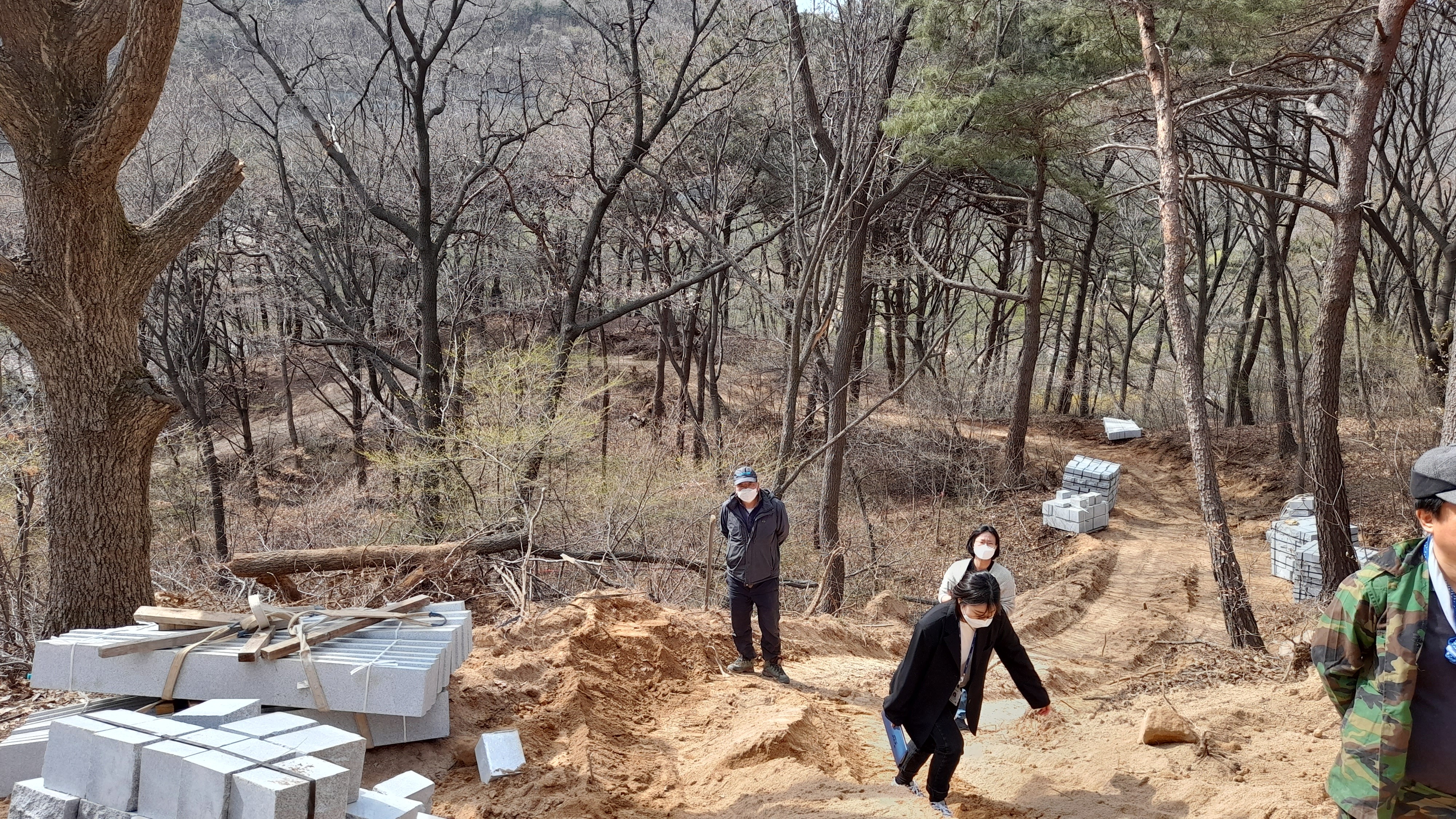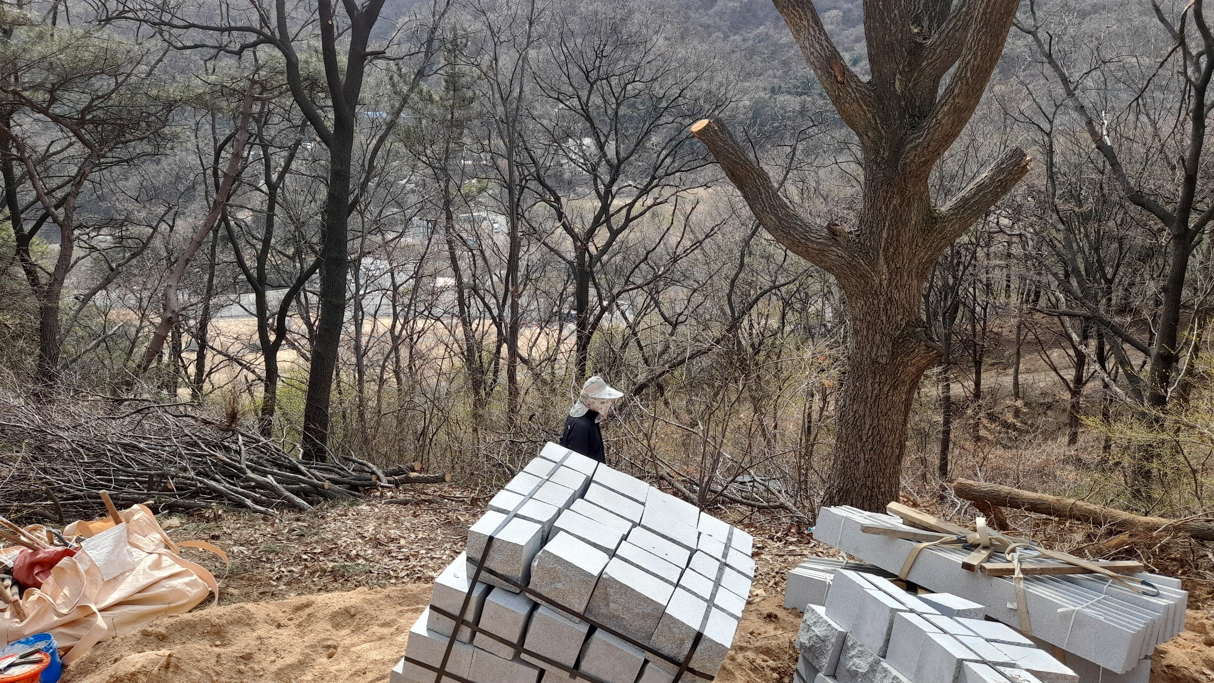 묘지설치공사는 2021.3.21.부터 시작한 것으로 추정되며 무허가로 산림훼손, 절성토, 벌목, 무단적치가 진행되고 있습니다.