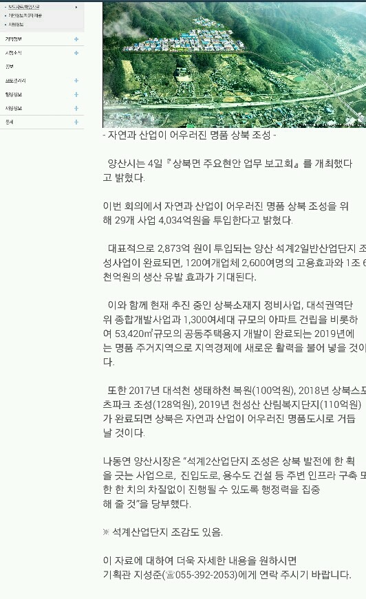 양산시청 홈페이지에 양산 상북면이 시끌시끌합니다.