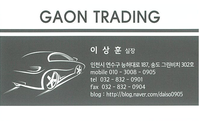 저는 인천에서 중고차 수출업에 종사하고 있는 가온무역 이 상 훈 실장입니다.