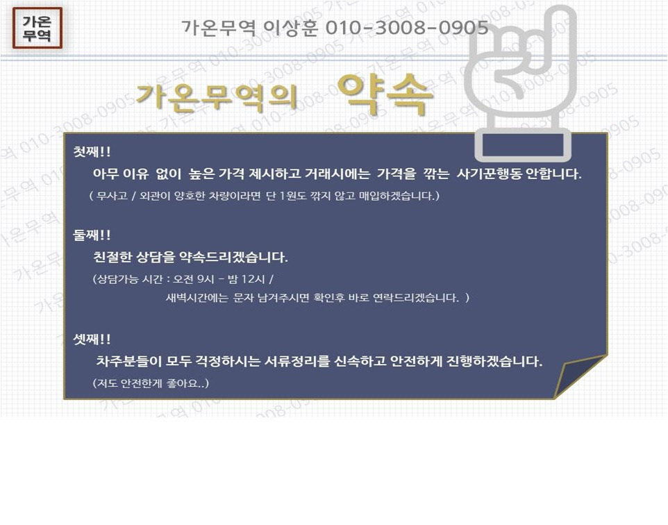 카카오톡 플러스친구 검색 @가온중고차수출 << 검색하셔서 채팅걸어주셔도 문의가가능합니다 ^^