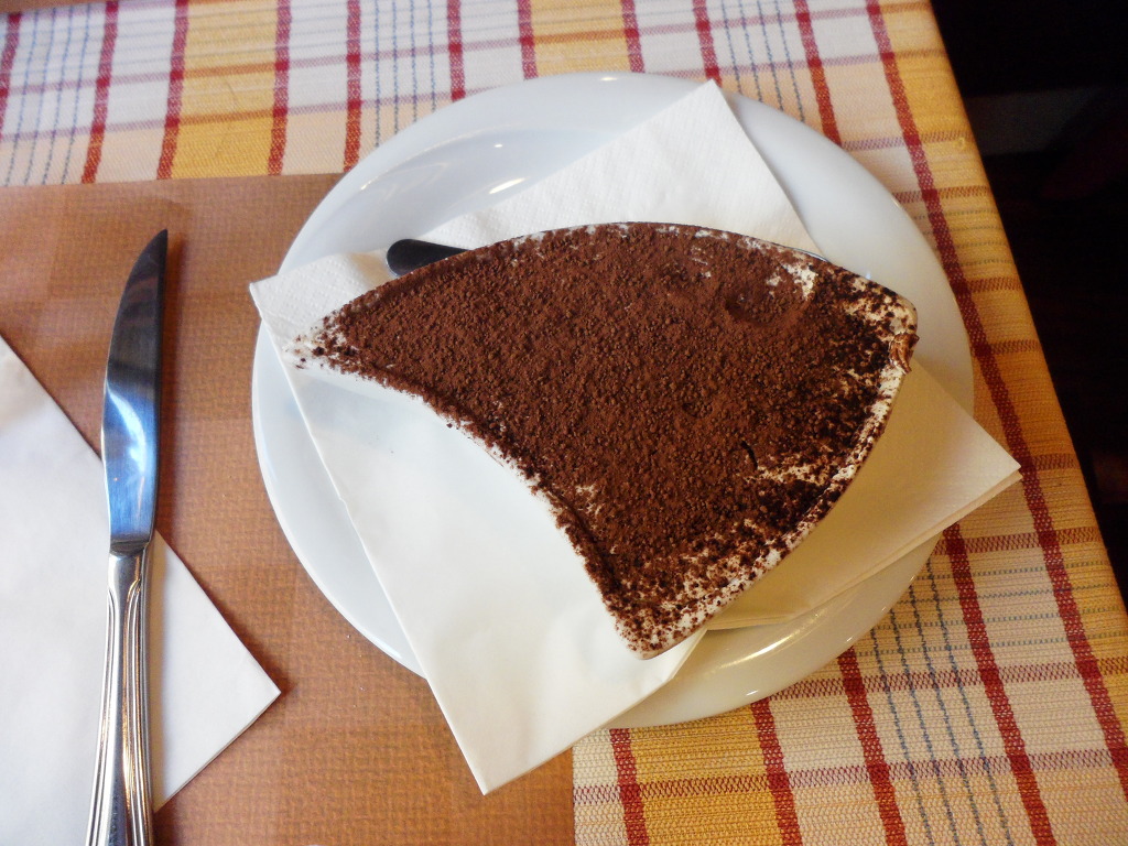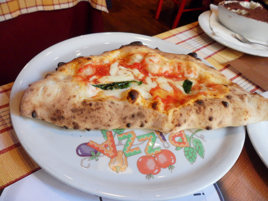 이탈리아 사람들은 한 사람당 피자 1판을 시켜 먹던데 저랑 다정이는 한판가지고 둘이 나눠먹고 어떤 때는 2조각 남을 때도 있었습니다. 양이 적어서 그런가봐요. 그리고 도우가 얇아서 바삭하고 바로 구워져 나온 피자를 먹으니 정말 맛있었습니다. 위 사진의 식당에서도 맛있게 잘~ 먹었습니다. (티라미수,만두모양의 피자 칸초네)