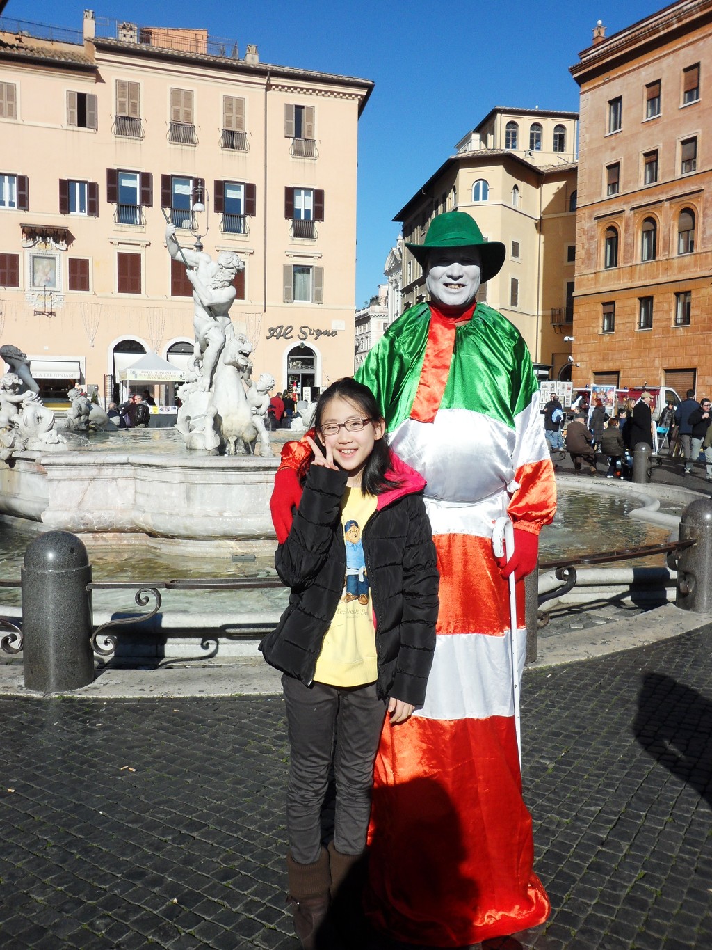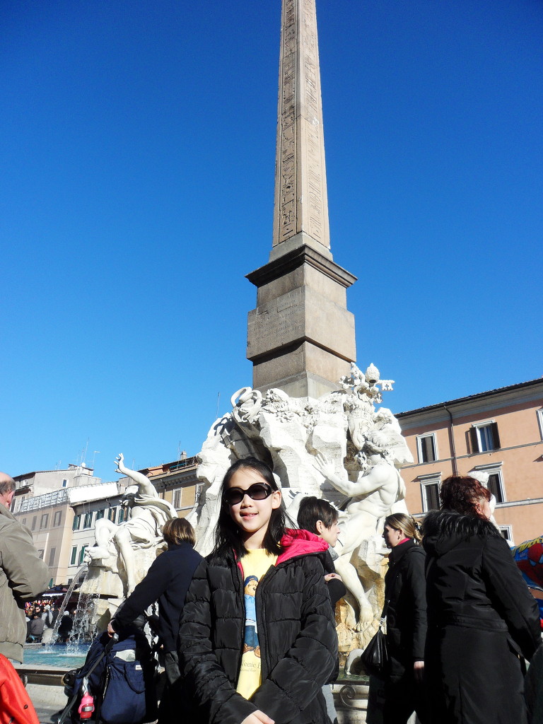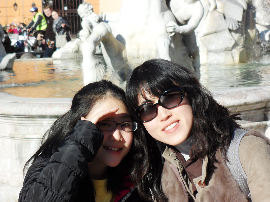 나보나 광장에 가서 무어인의 분수, 넵툰의 분수,가으이 분수를 봤는데 강의 분수는 베르니니가 만든 것으로 바로크 조각의 걸작으로 손꼽힌다고 합니다. 그리고 다정이는 지나가다가 재미있는 복장을 하고 있는 사람들을 보면 그냥 못지나가요. 동전을 꼭 던져주세요.