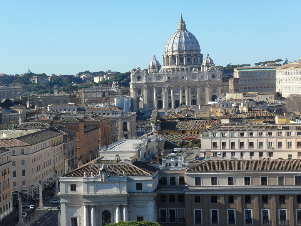 천사의 성에서 보면 바티칸이 보이는데 일요일 11시30분쯤 이었는데 광장에 사람들이 많이 모여 있더군요. 아래사진에 사람들 모여 있는거 보이세요?