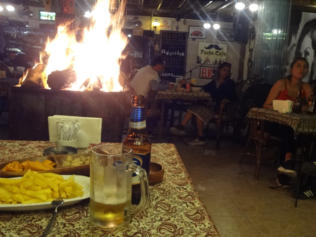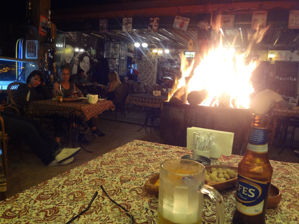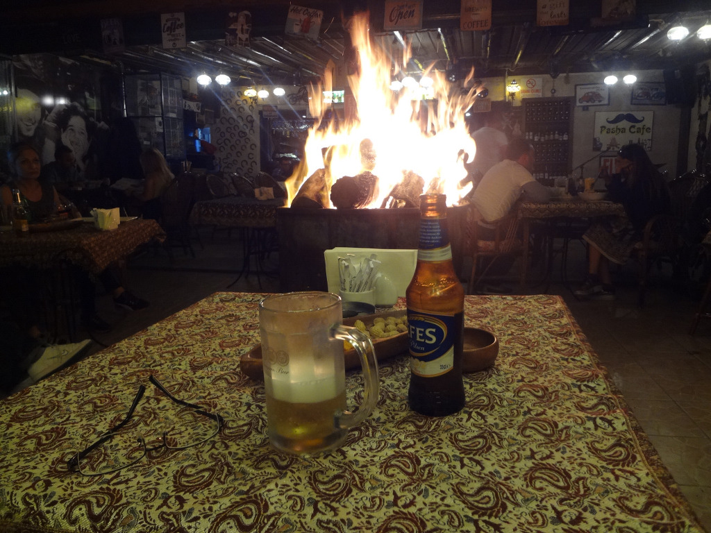 모닥불을 피워놓은 카페가 있어 들어가서는 맥주 를 시켜 마십니다.