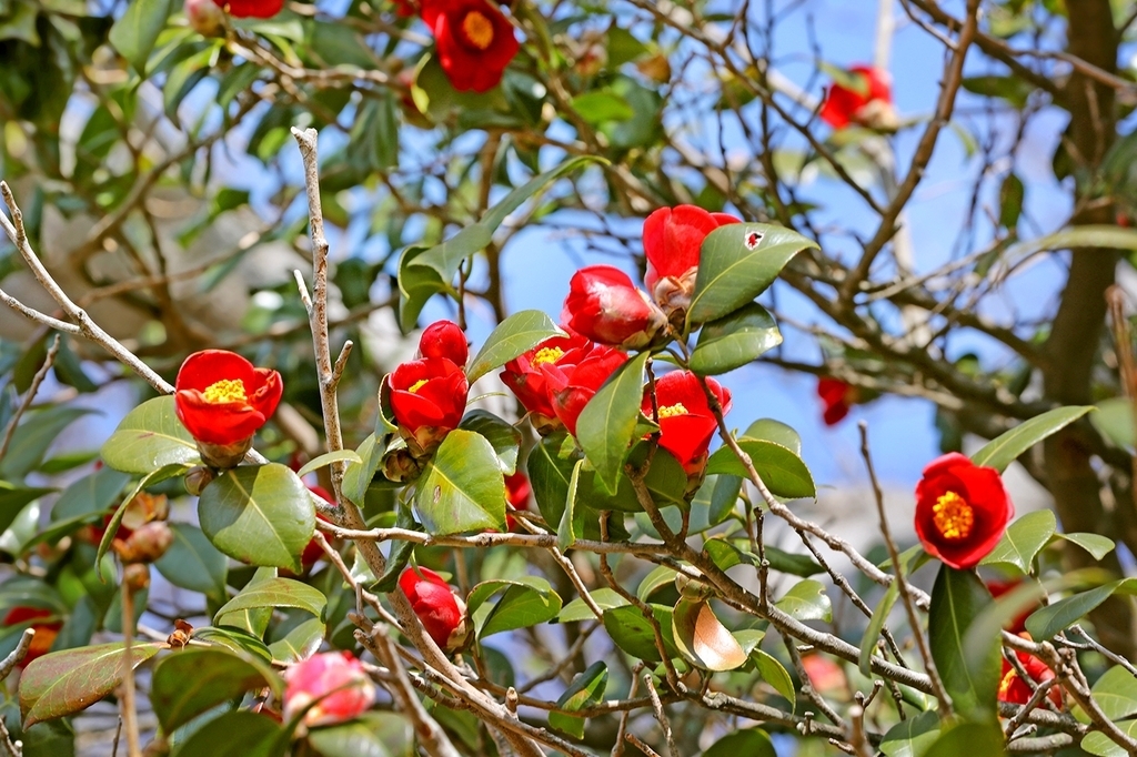 눈 속에서 피어나는 동백꽃은 문인과 학자들로부터 설중매 못지않은 관심을 끌었다. 시인 정훈(1911∼1992)은 '백설이 눈부신/하늘 한 모서리/ 다홍으로/불이 붙는다'고 동백의 강인함을 절창했다. 동백은 아름다움과 꽃 속의 꿀 당도가 절정에 이르렀을 때 꽃송이째 땅에 툭 떨어진다. 볼품없이 시든 꽃잎이 하나둘 떨어지면서 사그라드는 여느 꽃과 비교된다. 그래서 동백은 세 번 핀다고 일컬어진다. 나무에서 한 번, 땅에서 한 번, 사람의 마음속에서 한 번이라는 것이다. 따뜻한 남쪽 지방과 서해안에는 동백나무 군락지가 곳곳에 있다.