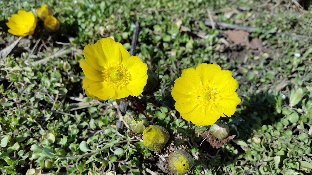 복수초가 1차개화를 시작.