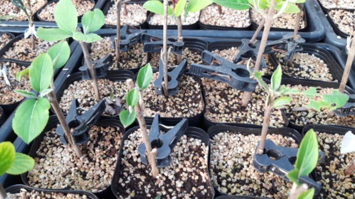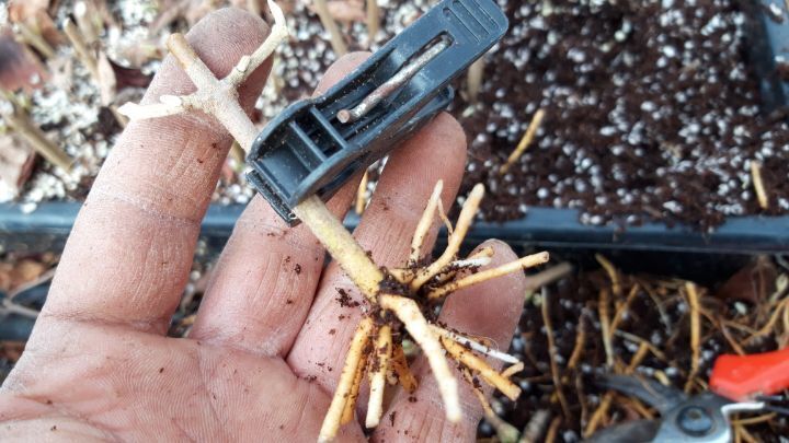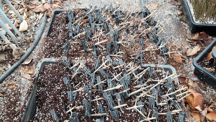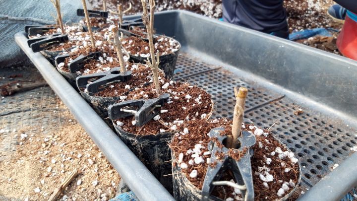 발근묘를 월동시킨후 바로 뽑아서 접목후 포트작업.