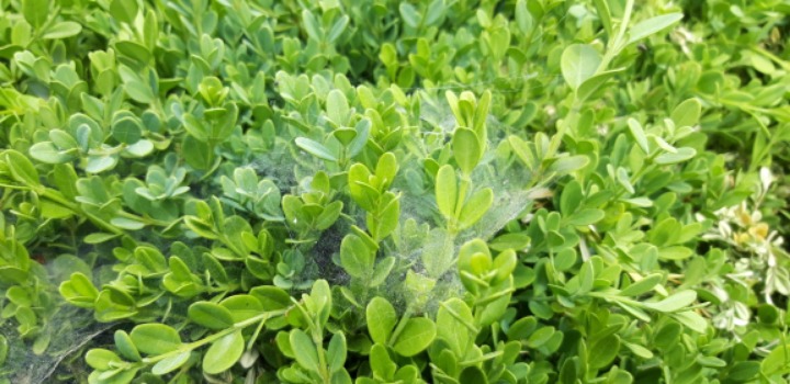 회양목 새순이 나올때 흰 거미줄이 쳐있으면 명나방 애벌레가 잎을 먹어치우는 때인거라.