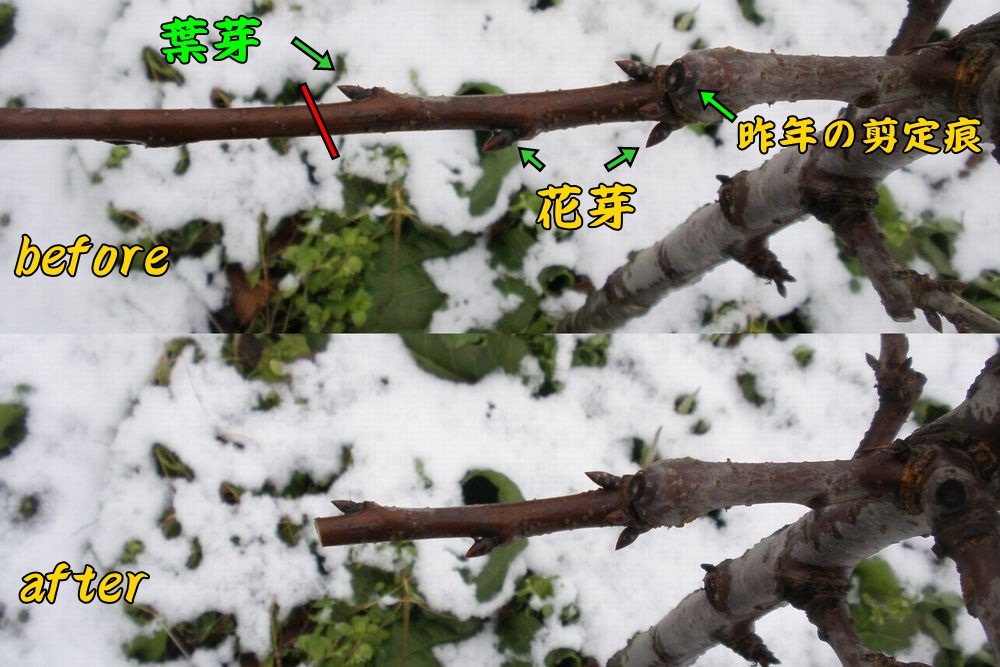 화아는 모두 남기고 잎눈[엽아]하나를 남긴후 잘라버립니다. 매년 이런식으로 반복하는것이지요.