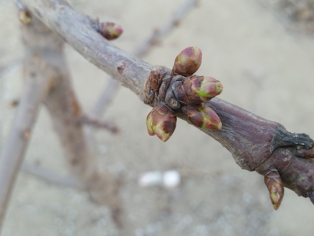 작년에 가지가 된것은 이정도로 짧게 남기고 잘라줍니다.
