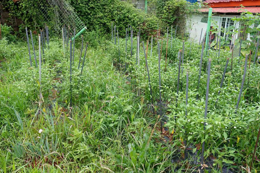 아침 텃밭....풀이 넘 자랐네요..어디가 상추 경계인지? 대파와 고추밭 경계인지? ㄷㄷ