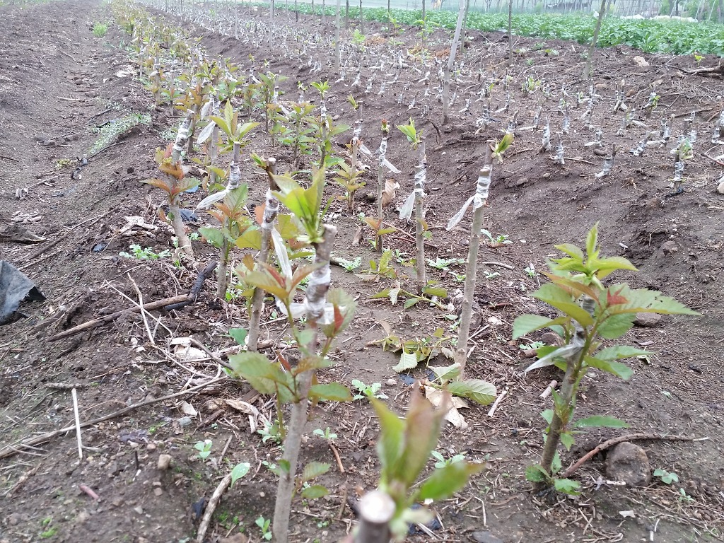 안개비를 맞으면서 내년도 접목할 마하렙 유묘를 정식했네요.