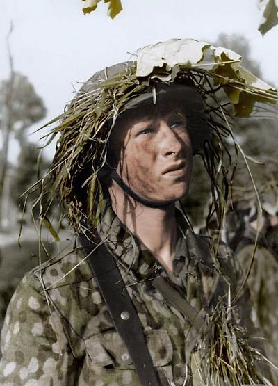 위장복과 풀로 위장한 독일 무장친위대 병사