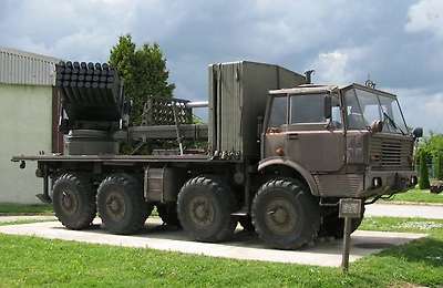 RM-70 밤피르 122mm 다연장 로켓 <출처: armadninoviny.cz> 개발의 역사 나라마다 독자 개발한 무기도 있지만, 일반적으로 자신들이 속한 진영이나 동맹 체제에서 호환되는 무기를 사용하는 경우가 많다. 이런 호환은 주로 화포에서 이루어지는 경우가 많은데, 소총·기관총·박격포·견인포·자주포·로켓포의 구경(caliber)이 대표적이다. 옛 체코슬로바키아(현재 체코와 슬로바키아로 분리)를 포함하여 냉전 시기 바르샤바 조약국에 속했던 국가들은 소련이 채용한 무기를 도입하거나, 호환되는 다양한 무기를 개발했다. 이런 경향은 여러 발의 로켓탄을 한 지역에 퍼붓는 다연장 로켓(MLR, Multiple Launch Rocket)에서도 이어졌다. 소련 육군은 제2차 세계대전에서 카추샤(Katyusha)로 불리던 BM-13, BM-8 그리고 BM-31 트럭 탑재 다연장 로켓을 대량 운용하여 독일군에 막대한 피해를 줬고, 종전 이후 소련의 영향력에 들어간 국가들도 많은 양을 도입했다. 하지만 일부 국가는 소련제와 호환되는 무기를 개발했는데, 체코슬로바키아는 130mm 구경의 BM-13 다연장 로켓 대신 자체 개발한 RM-51 다연장 로켓을 사용했다. RM-51 다연장 로켓 <출처: (cc) Tourbillon at wikimedia.org> 하지만 카추샤 다연장 로켓은 사거리가 8km 정도로 짧아 적의 대응에 취약했다. 소련은 새로운 로켓 개발에 착수해, 1963년부터 122mm(정확하게는 122.4mm) 구경의 BM-21 그라드(Grad) 다연장 로켓을 도입하기 시작했고, 다른 공산권 국가들도 뒤따라 도입했다. BM-21은 5명의 조작 요원이 3분 안에 발사 준비를 마치고, 20초 안에 40발의 로켓을 발사할 수 있다. 길이 2.87m인 표준형 고폭파편탄(HE-FRAG)은 사거리가 20km이고, 이 밖에도 9M22U 고폭파편탄, 9M127 대전차 클러스터(cluster)탄, 9M521 고폭파편탄 등 다양한 종류의 로켓탄을 발사할 수 있다. RM-70 다연장 로켓 <출처: Public Domain> 동구권 국가들 가운데서도 충실한 공업 기반으로 각종 자동차와 무기를 제작하던 체코슬로바키아는 BM-21와 로켓탄은 호환되지만, 소련제 장비의 야전 기동성과 방어능력을 향상시킨 자체적인 122mm 다연장 로켓 개발에 나서게 된다. 체코슬로바키아는 1897년부터 자동차를 만들던 오랜 전통의 타트라(Tatra)라는 자동차 회사가 개발한 트럭을 기반으로 1960년대 중반부터 라케토메트(Raketomet) vz.70 줄여서 RM-70으로 불리는 다연장 로켓을 개발하여 1970년부터 배치를 시작했다. 나토(NATO)는 RM-70이 1972년 체코슬로바키아 군사 퍼레이드에서 처음 목격되었기 때문에 M-1972로 분류하고 있다. 특징 소련제 BM-21은 우랄(Ural)-375D나 우랄-4320과 같은 6X6 트럭 차체를 사용해 야지 기동력은 뛰어났지만, 운용 요원 보호에 필요한 방탄 성능은 갖추지 못했고, 발사 후 재장전을 위해 늘 보급 차량이 필요했다. RM-70은 타트라 T-813 8륜구동 트럭을 플랫폼으로 사용한다. <출처: Tatra Auto> 체코슬로바키아는 RM-70 다연장 로켓을 개발하면서 운반 플랫폼으로 병력·화물 운송, 야포 견인 등 다양한 용도로 활용한 타트라의 T-813 8X8 트럭을 채용했다. T-813 트럭은 공차중량 14톤, 탑재중량 8톤, 길이 8.8m, 폭 2.5m, 엔진은 250마력의 타트라 T930-3 디젤엔진을 사용하여 러시아제 BM-21에 사용된 트럭보다 뛰어난 성능을 지녔다. RM-70은 경사각 60%를 오를 수 있고, 높이 0.6m의 장애물을 극복할 수 있으며, 1.6m 너비의 참호를 극복할 수 있다. 또한 긴 차체 덕분에 추가 탄약을 적재할 수 있는 여유 공간을 확보할 수 있게 되었다. 장애물 제거용 도저(dozer)가 설치된 슬로바키아군 RM-70 로켓 <출처: (cc) Jozef Kotulič at wikimedia.org> T-813 트럭은 전륜 구동(all-wheel drive) 방식이며 험한 야지 극복에 필수적인 독립 서스펜션(independent suspension)을 갖추었고, 공기압 조절 장치로 지면 상태에 따라 적절하게 타이어의 공기압을 조절할 수 있었다. 차량 아래 범퍼에는 겨울철 작전을 위해 제설용 쟁기 또는 장애물 돌파용 도저 날(dozer blade)를 장착할 수 있다. 쟁기나 도저 날을 장착하면 가려지는 차량 헤드라이트를 보완하기 위해 운전석 중앙 상단에 조명을 추가로 장착할 수 있다. RM-70 차량은 차체 전면의 운전자와 운용 병력이 탑승하는 운전석(cabin)이 소총탄이나 포탄 파편으로부터 탑승자를 보호하기 위해 장갑으로 덮여 있다. 운전석 오른쪽 위에는 방어용으로 사용할 수 있는 7.62mm 기관총탑이 설치되었다. 운전석에는 운전수와 기관총 사수 외에 로켓 발사대 조작 요원이 탑승하는 공간이 있다. 운전석의 기관총 사수석 안쪽 모습 <출처: chmelar-diorama.cz> RM-70에 사용된 차체 플랫폼에는 타트라 T-815도 포함된다. T-815 차체는 1983년부터 생산된 운전석이 장갑화되지 않은 RM-70/85 모델에 사용되었다. T-815 트럭은 공차중량 15톤, 탑재중량 15톤, 길이 9.36m, 폭 2.5m, 높이 3.65m로 크기가 커졌고, 엔진은 347마력의 타트라 T930-50 디젤엔진이 장착되었다. T-815 트럭은 슬로바키아가 개발한 다나(DANA) 152mm 차륜형 자주포의 플랫폼으로도 사용되었다. T-813과 T-815는 다연장 로켓 차량 외에 탄약운반차량으로도 채용되어 작전 시 함께 움직인다. RM-70에 장전을 위해 122mm 로켓 신관을 장착하고 있는 체코 육군 <출처: 체코 육군> RM-70의 로켓 발사관은 BM-21과 동일한 4열 10행(4X10) 구성으로 총 40발의 122mm 로켓을 발