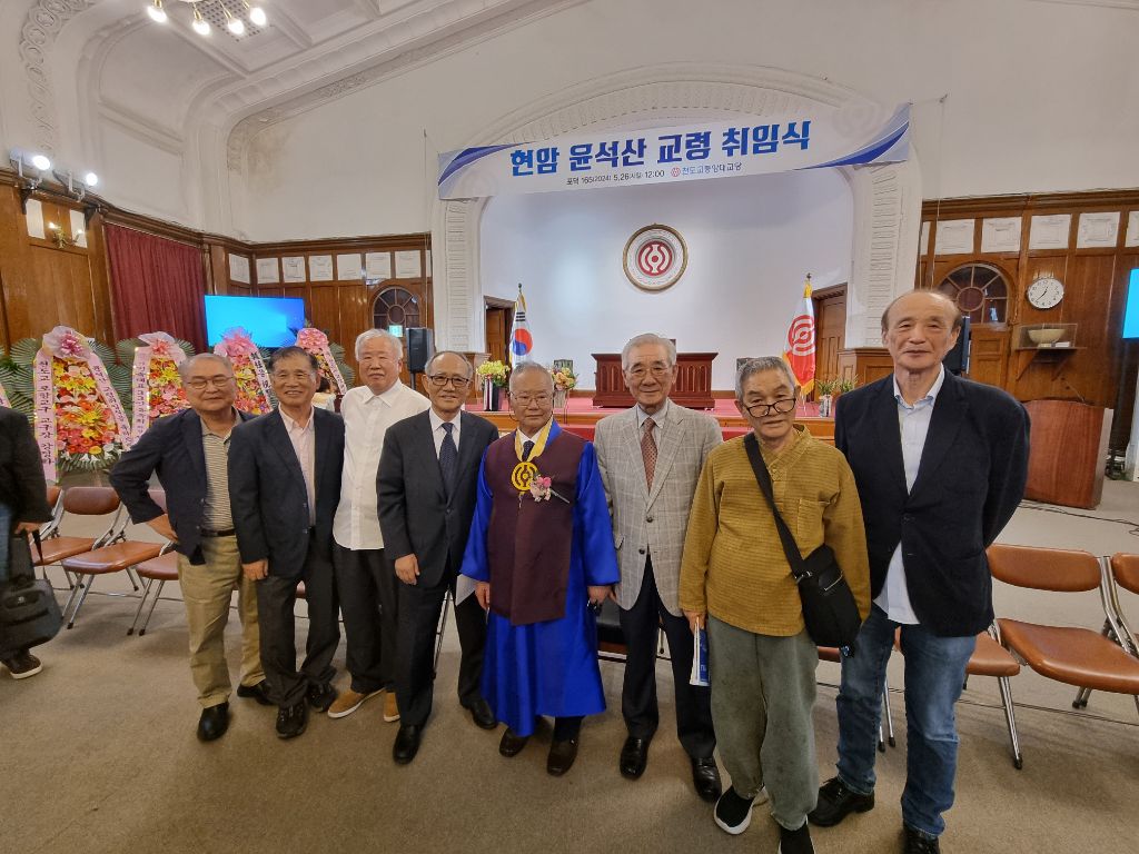 2024.5.26. 12시 천도교 중앙 총본부 대강당에서 윤석산 동창의 교령 취임식을 거행하였다. 윤경로 동창이 축사를 하고 권춘상 김기창 배백섭 최제형 이윤방 신경헌 홍병철 동창이 참석했으며 상단문학회(문예반) 후배들도 함께하였다. 식장에서 제공하는 식사를 부근에서 하고 김기창 동창의 안내로 인사동 찻집으로 자리를 옮겨 오래간만에 친구들과 담소를 나누었으며 이자리에 윤석산 동창도 동석하였다.