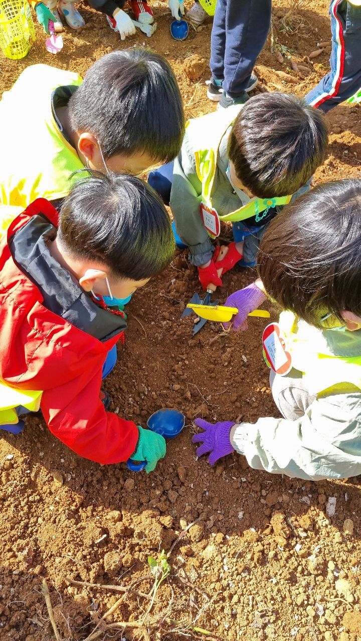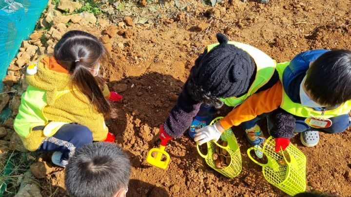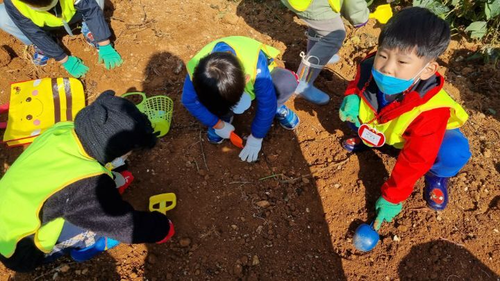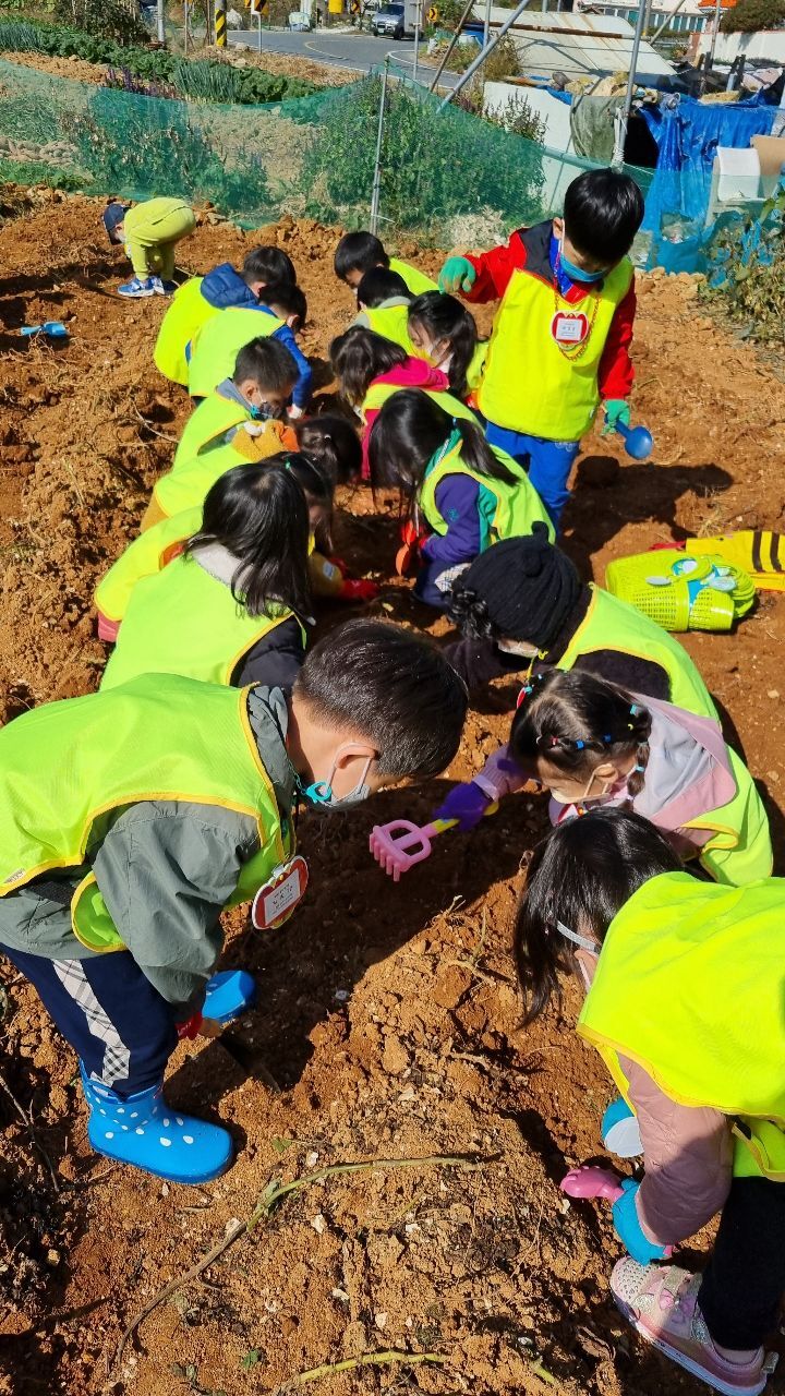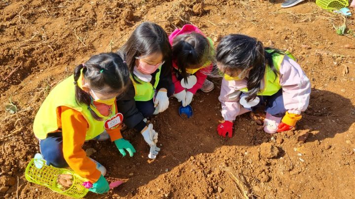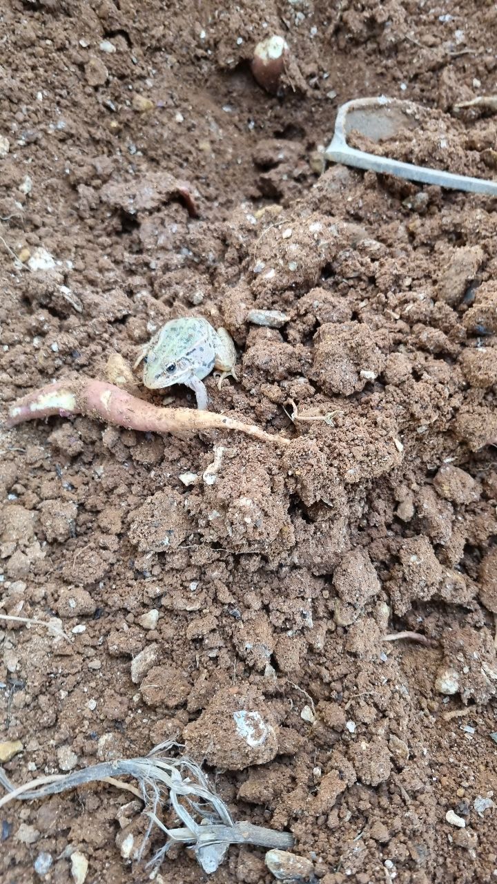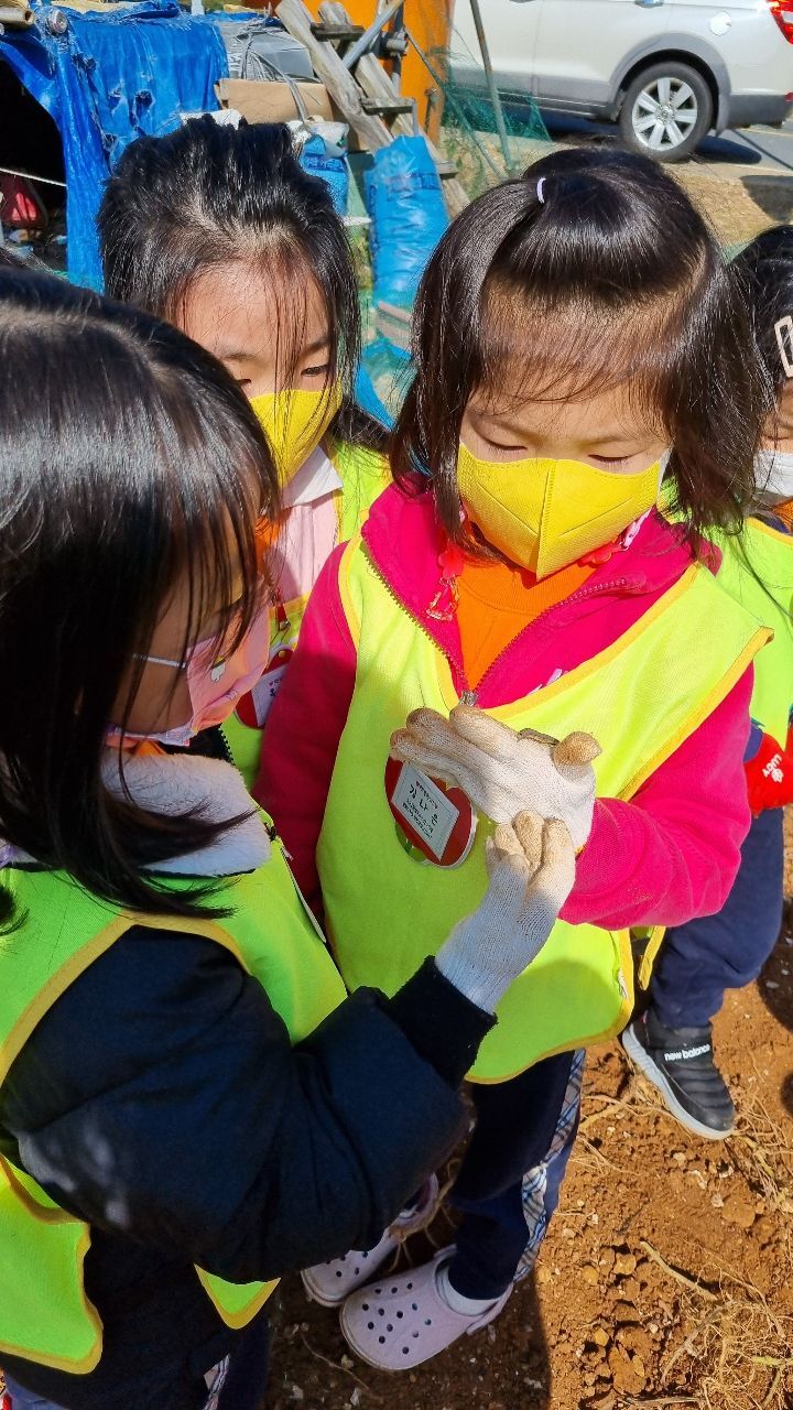 땅파기 삼매경에 빠져있던 우리 행복이들~~ "악!!!개구리다"하는 외침에 우르르 몰려가 개구리 관찰도 했어요~~ 고구마 캔다고 땅을 파다 그만 겨울잠 자려고 준비하던 개구리를 강제로 깨웠지 뭐예요ㅠ 너무너무 미안해서 조금 살펴보고 집으로 돌려 보내주었어요