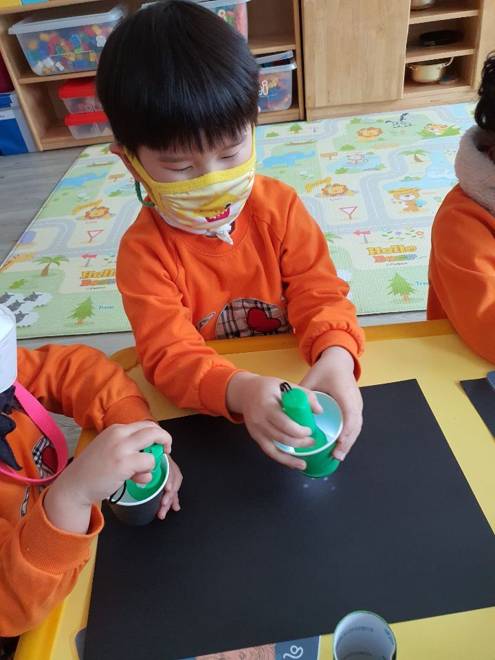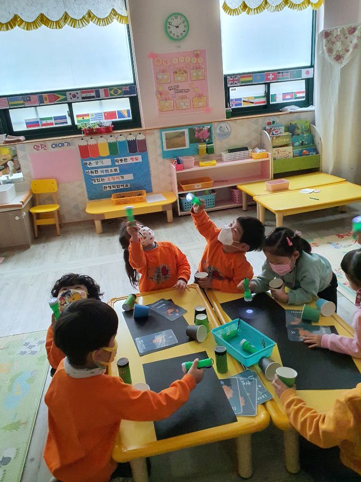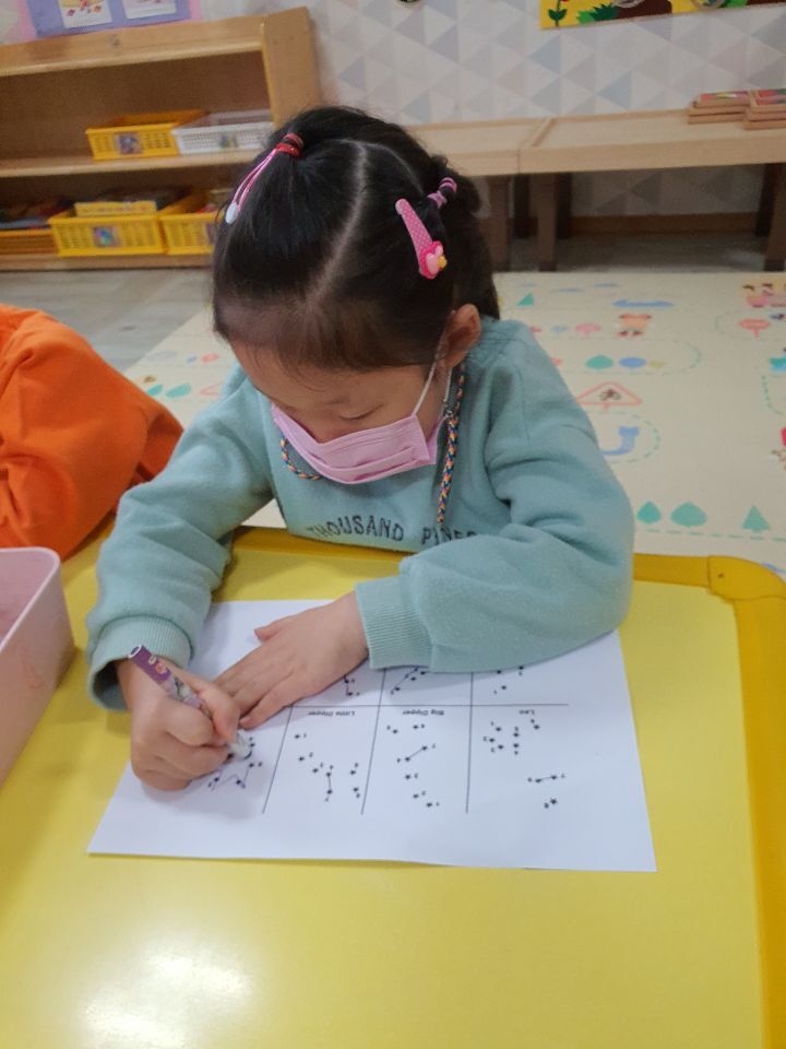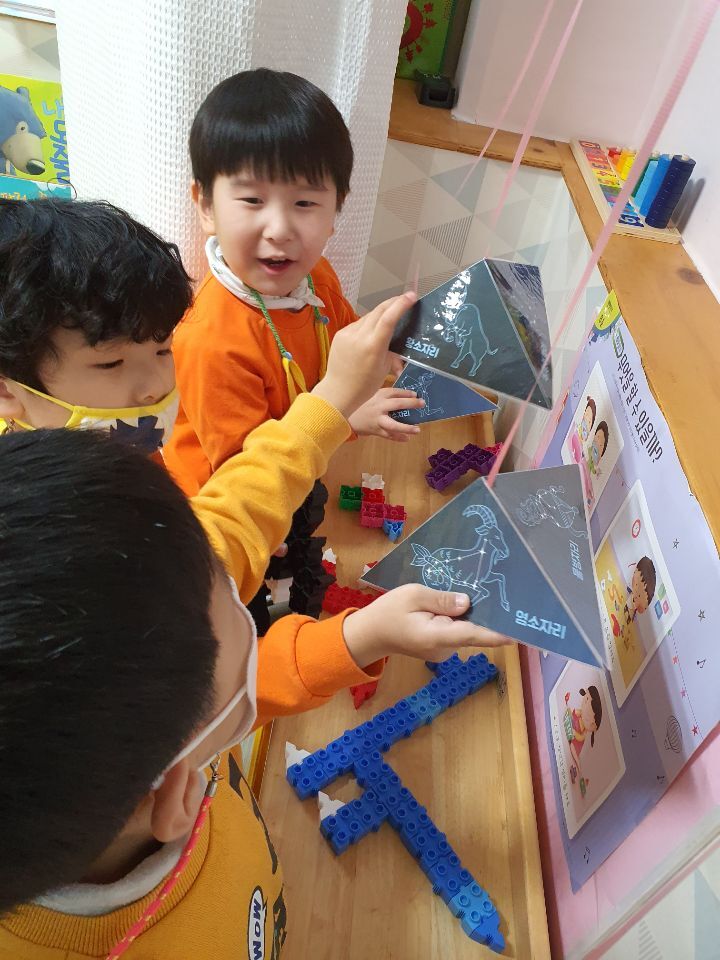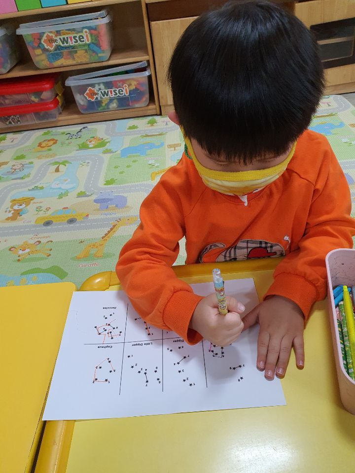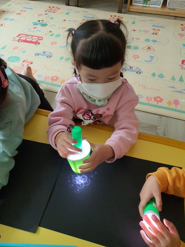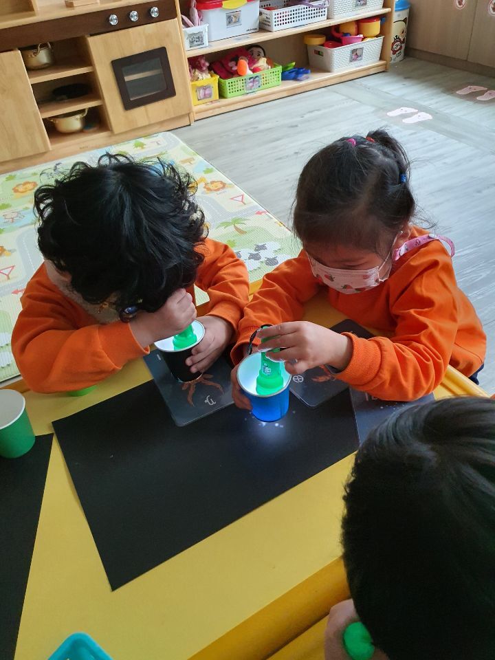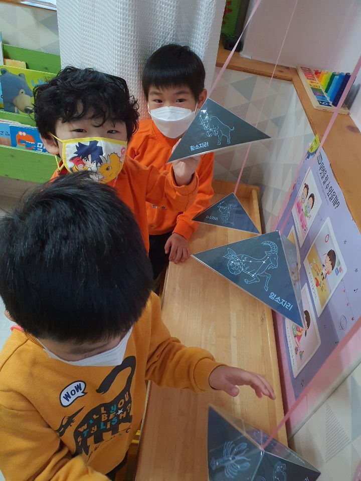 숫자 연결해서 별자리 그림 그려보기도 하고 손전등과 종이컵을 이용해 반짝반짝 자신의 별자리를 만들어 보기도 했어요~~