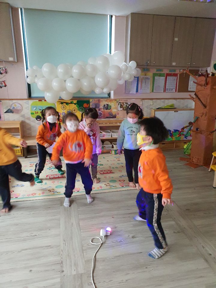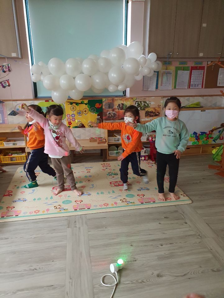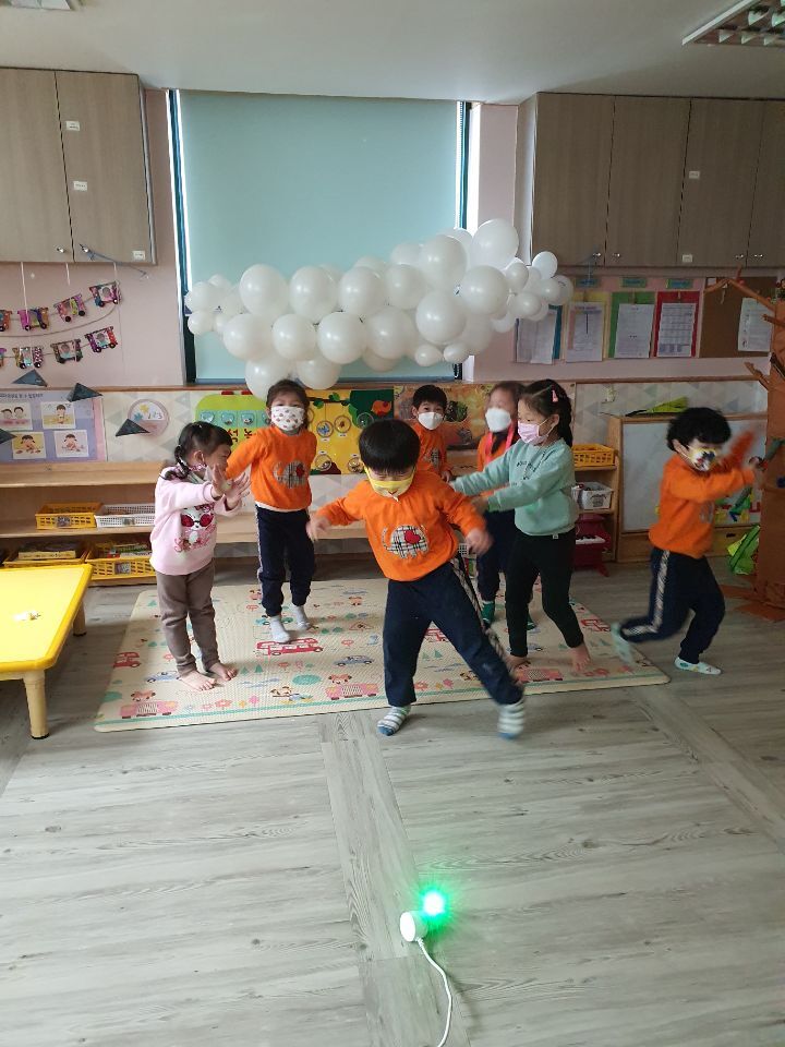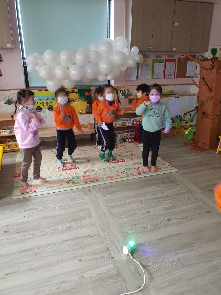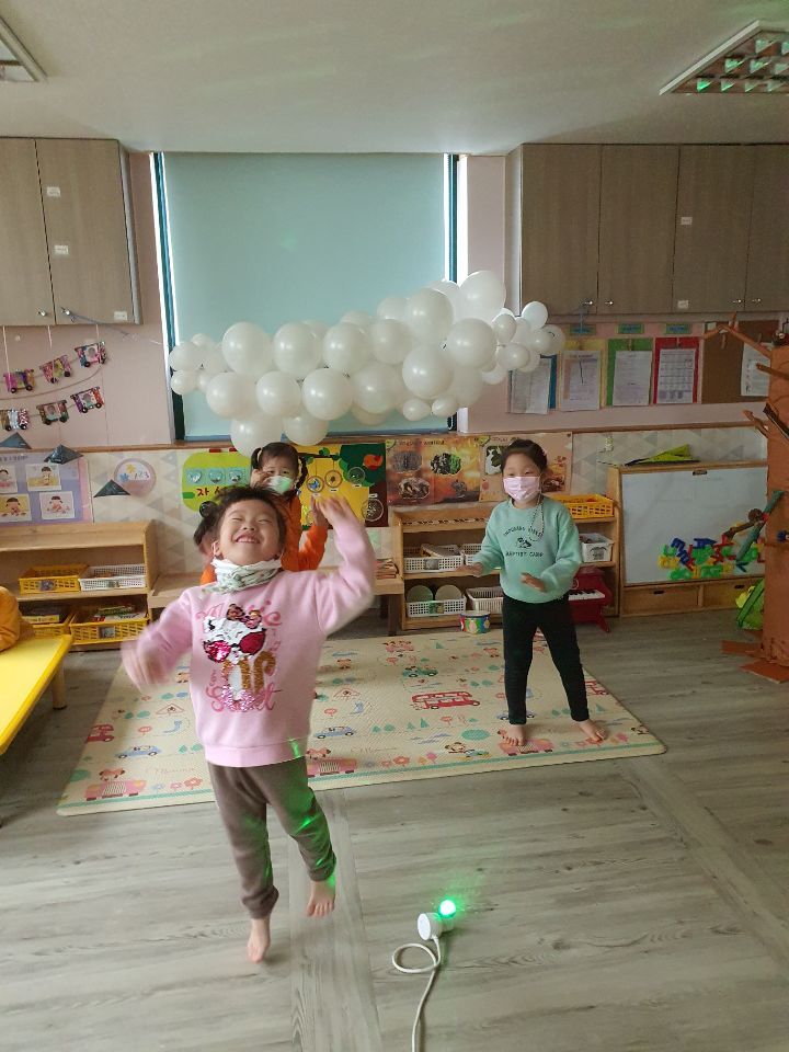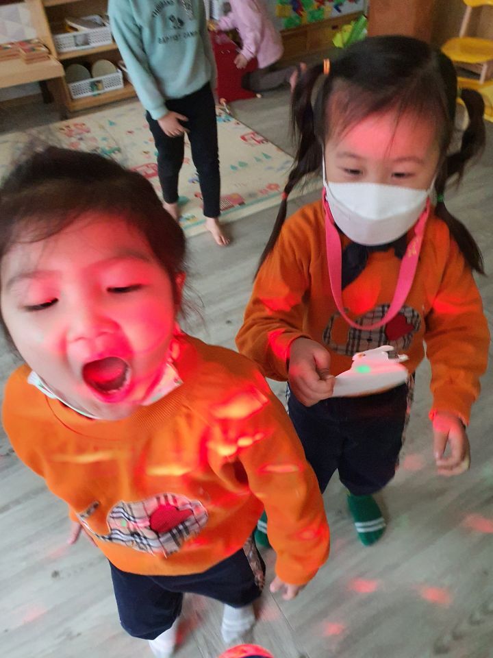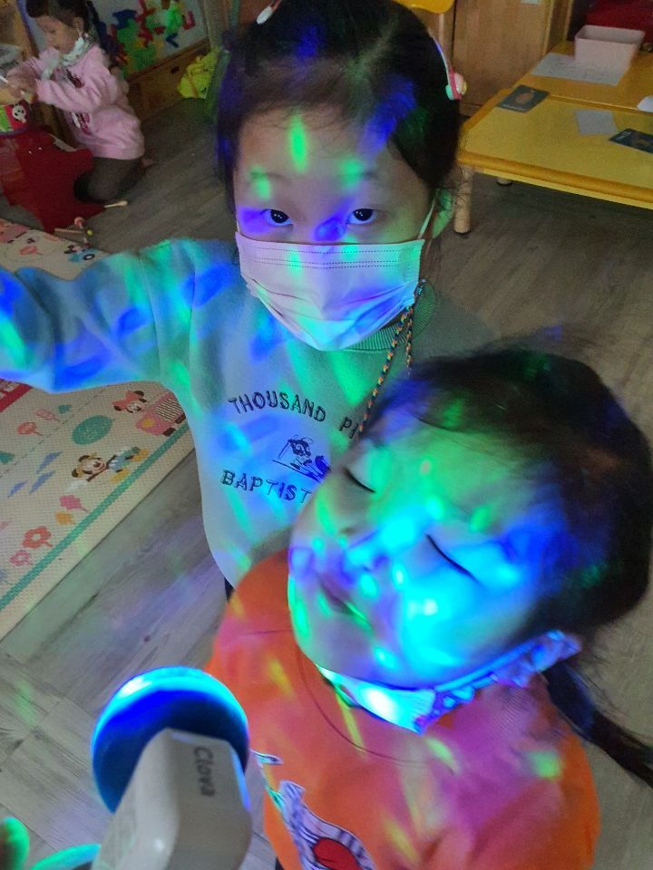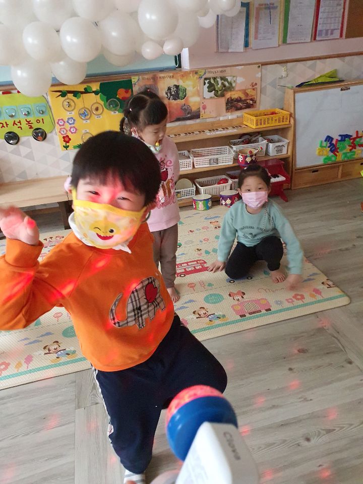 소심한 미러볼 불빛에도 흥이 난 즐거운 친구들~~ 노래에 맞춰 신나게 춤도 춰 봅니다~♡