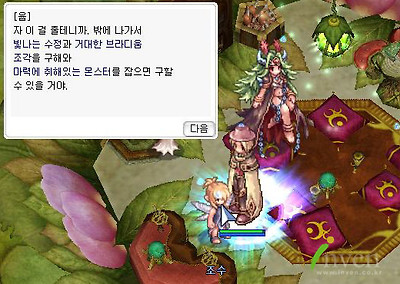 윱은 마력이 깃든 돌 2개를 착용한 뒤 나가와 브라디움 골렘을 사냥해 재료를 구해오라고 한다.