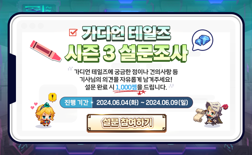 [가디언 테일즈 시즌 3 설문조사 진행 안내]