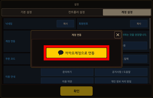 기사님의 소중한 게임 정보 저장을 위해 꼭 카카오 계정 연동을 부탁드립니다.