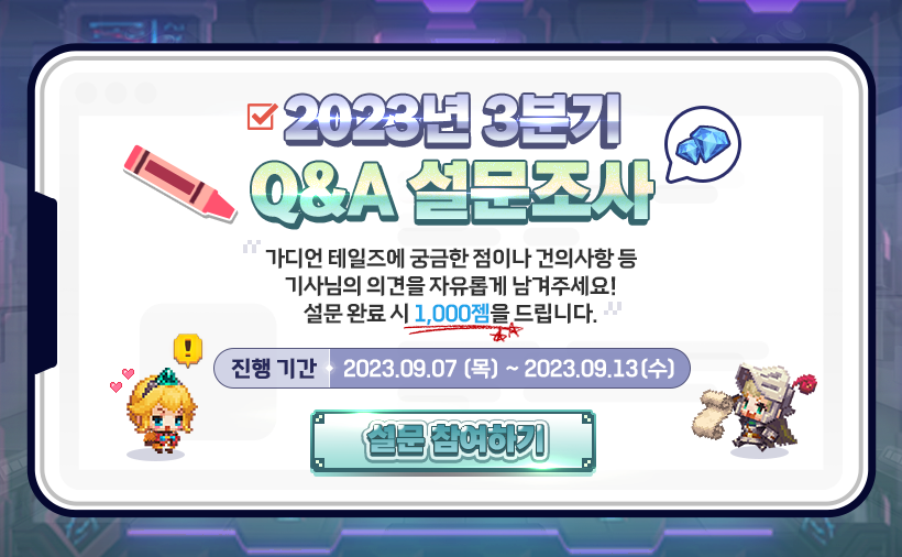 - 가디언 테일즈 접속 시 노출되는 배너를 통해 설문에 참여하실 수 있습니다.